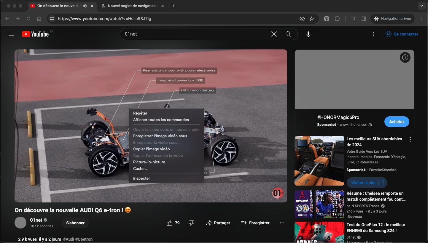 Il est possible de partager une vidéo en la faisant commencer à un moment précis. Pour cela, mettez votre vidéo en pause au moment souhaité et faites un clic droit sur la fenêtre de lecture. Cliquez ensuite sur Copier l’URL de la vidéo à partir de cette séquence.