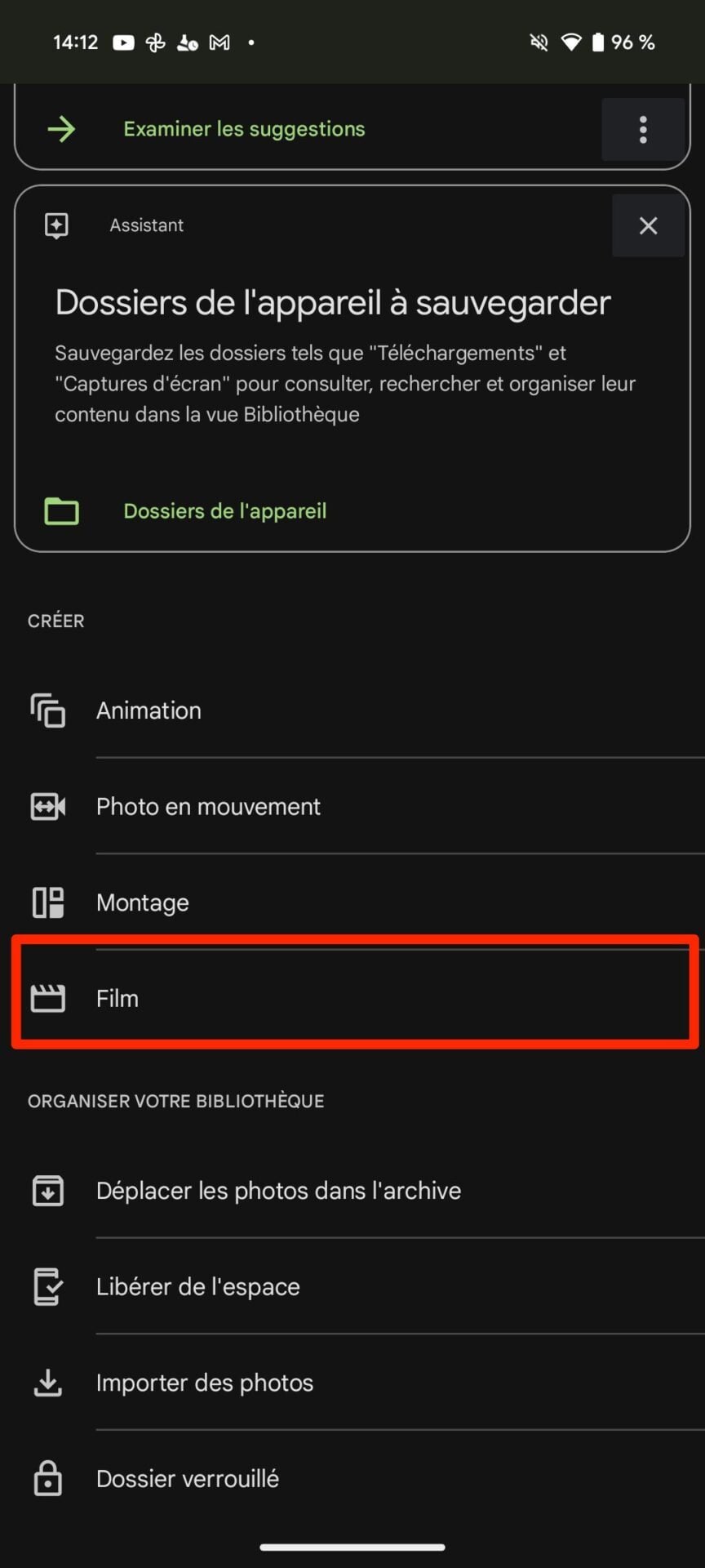 De la même manière qu’il est possible de générer de manière automatique des films, Google Photos propose des outils permettant de créer des Animations, des Photos en mouvement, ou encore des montages. Rendez-vous, comme à l’étape précédente, dans l’onglet Bibliothèque, puis dans Suggestions utiles.