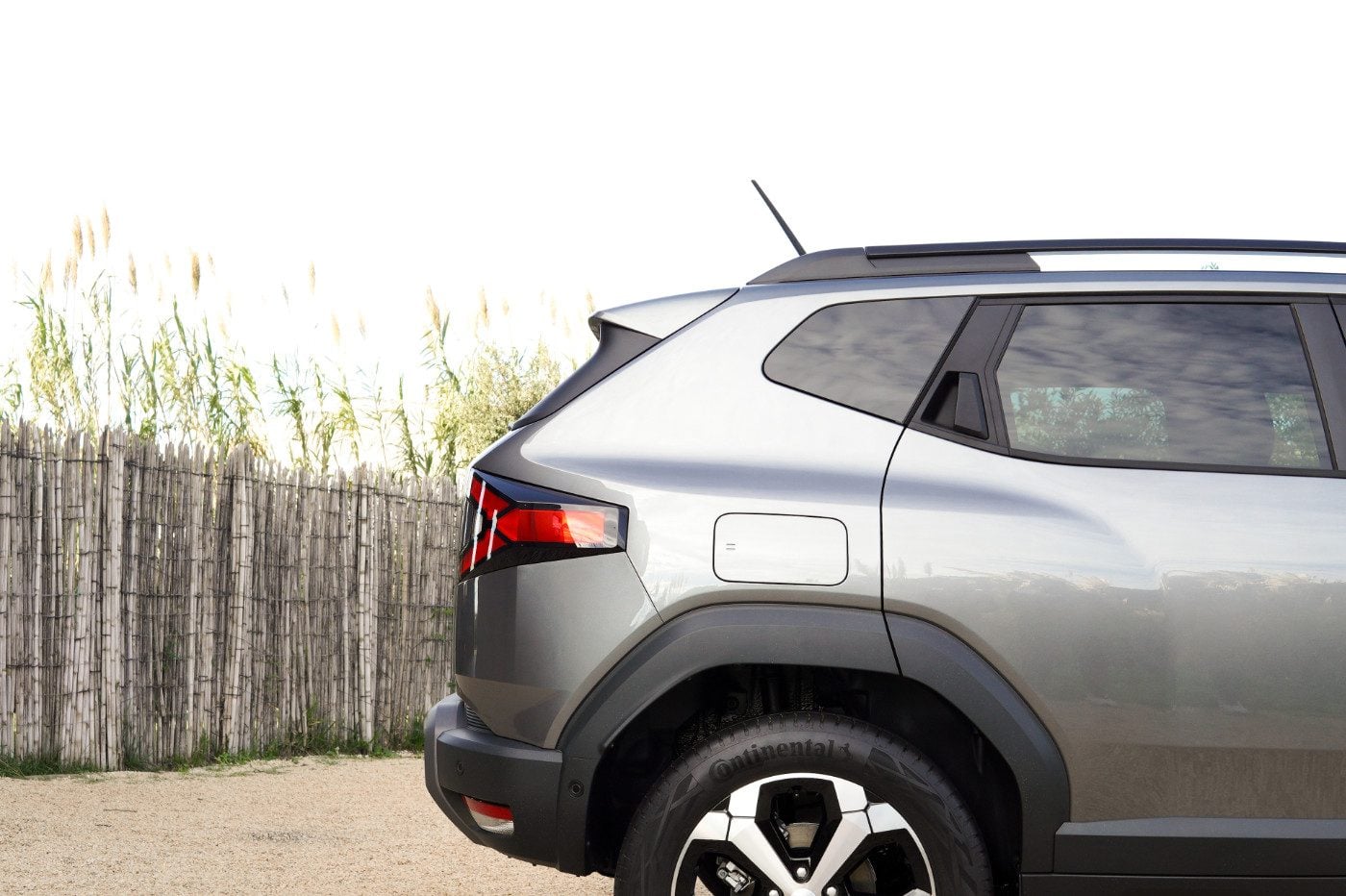 Proche des Jeep et des Land Rover sur le profil avant, le nouveau Dacia Duster de 2024 fait penser à un nouveau modèle Skoda sur son profil et 3/4 arrière. Le bouclier propre des anciennes générations de Duster, à l’avant comme à l’arrière, est ici affiné et élargi pour un ensemble plutôt réussi, notamment avec la nouvelle teinture de carrosserie couleur sable. Les plastiques protègent toujours autant les jupes et les passages de roues, avec cette fois-ci une apparence d’un matériau plus « brut », sans teinture, d’aspect solide dont Dacia affirme être le propriétaire.