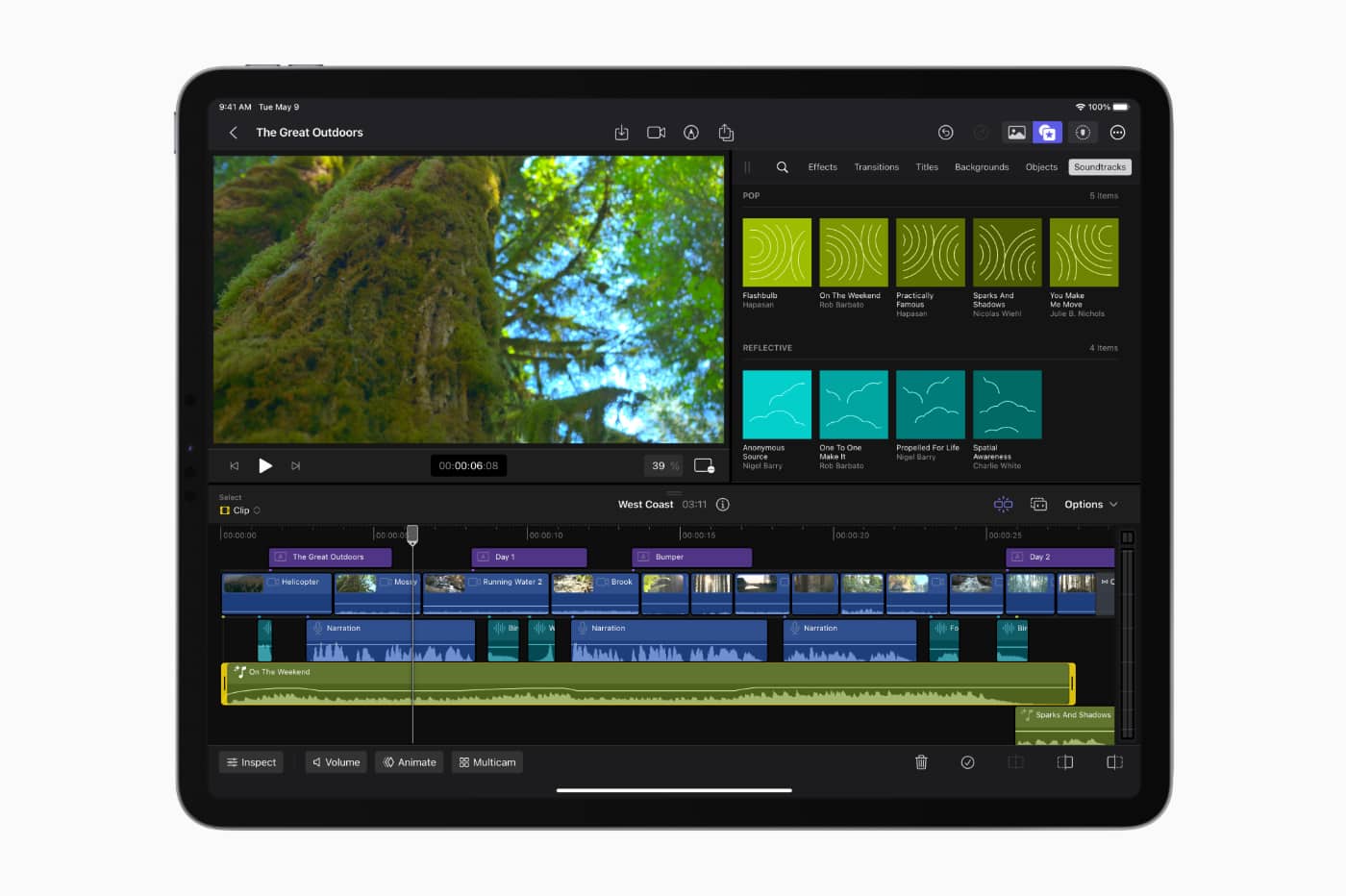 Preuve supplémentaire qu’Apple travaille à abattre les murs entre ses iPad les plus puissants et ses Mac, le géant de Cupertino vient de dévoiler les versions pour iPad de ses logiciels pro de montage vidéo et de création musicale. Ils seront disponibles le 23 mai prochain.