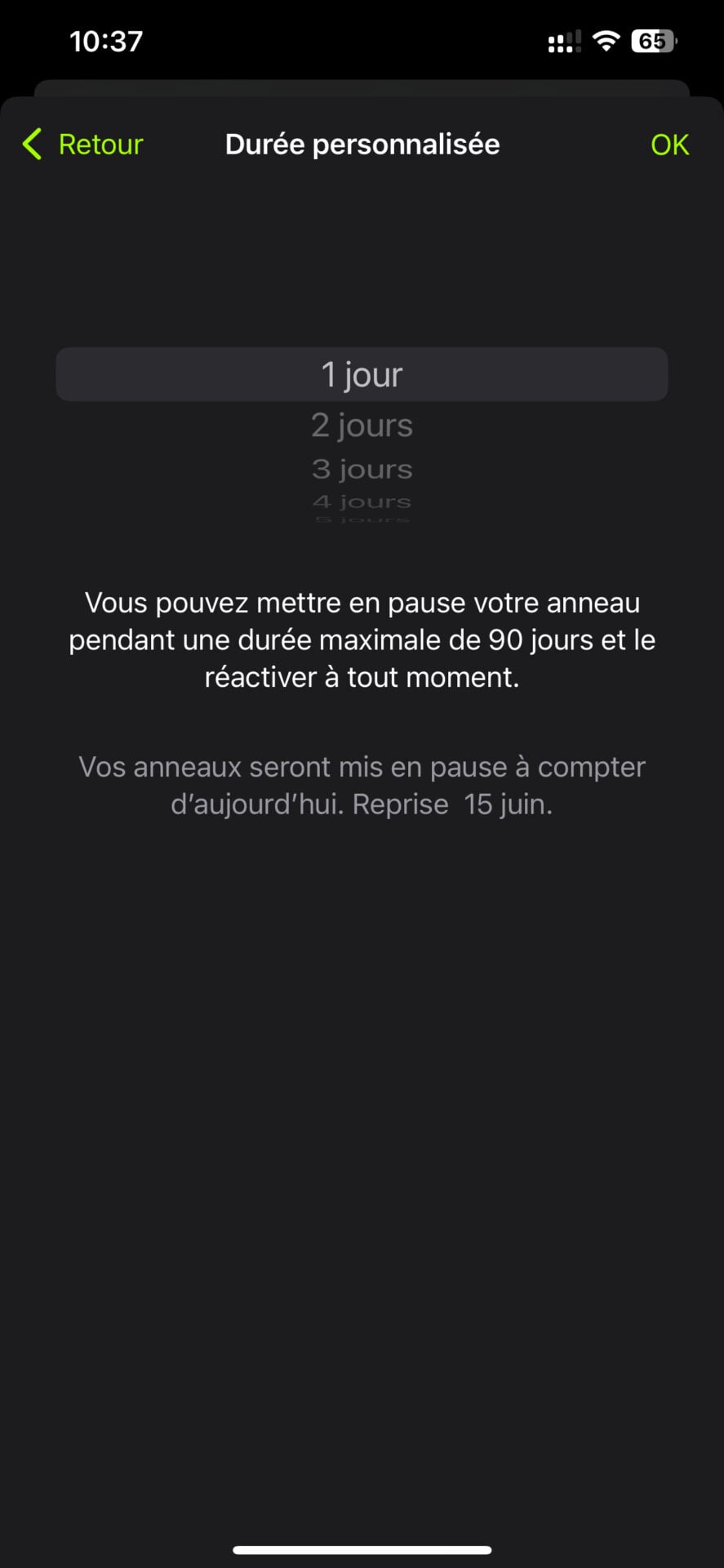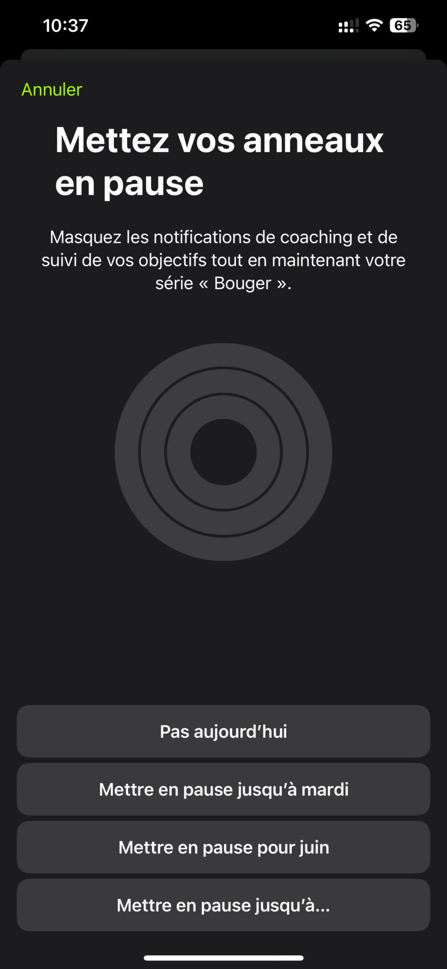 La fonction était réclamée depuis toujours, et Apple a fini par l’entendre. Avec watchOS 11 et iOS 18, il sera finalement possible de planifier un jour de repos dans les anneaux d’Activité ! L’option, accessible dans l’app Forme sur l’iPhone ou dans l’app Activité de l’Apple Watch, propose plusieurs réglages : on peut ainsi suspendre le suivi des anneaux pour la journée, le mois, ou jusqu’à une date spécifique.