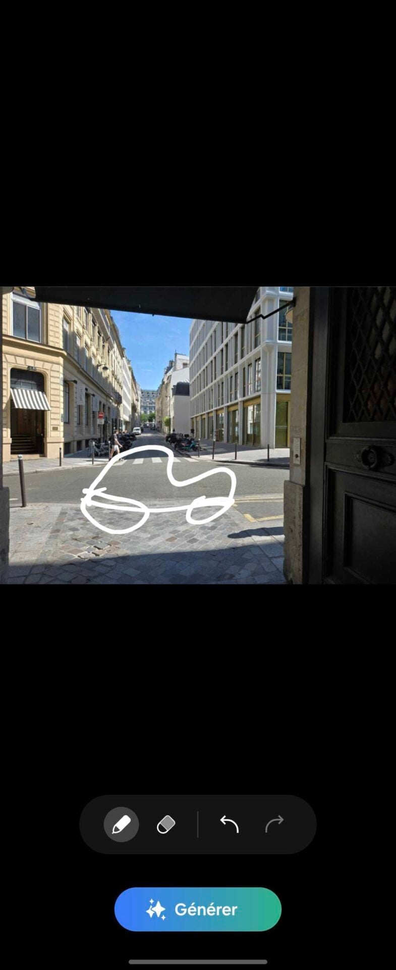 Passons aux quelques nouveautés IA intégrées à One UI 6.1.1. La plus bluffante est sans doute la possibilité d’ajouter des éléments à une photographie comme le chat blanc ou la voiture blanche ci-dessous.