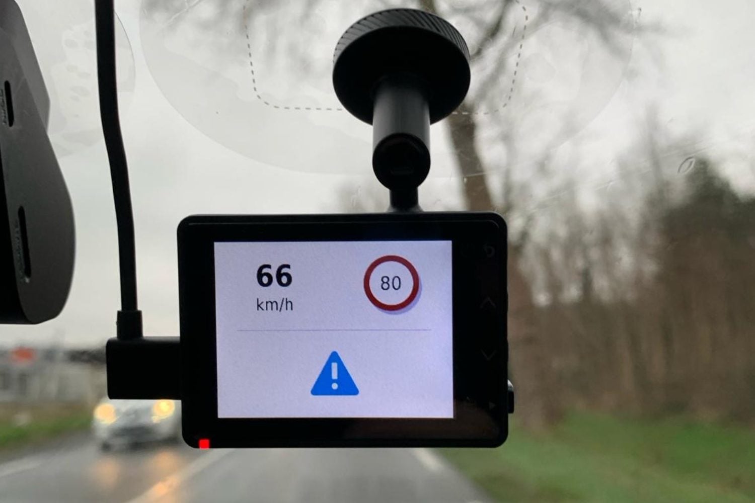 Tout ce qu’il est possible de faire depuis l’application l’est également depuis l’interface native de la caméra. Vous pourrez ainsi choisir l’un ou l’autre pour personnaliser la configuration de celle-ci. Les principaux réglages avancés (choix de la définition de l’image, réglage de l’image, etc. sont accessibles sur les deux. Évidemment, la lisibilité n’en sera que meilleure si vous passez par l’application Garmin Drive. Malgré une interface assez succincte, vous pourrez gérer la superposition des données, modifier l’indice de lumination de l’image, ou encore activer les différentes fonctionnalités offertes par la caméra. Cette 67W est d’ailleurs plutôt complète. Car outre la fonction Parking Guard que l’on retrouve fréquemment sur ces appareils (et dont vous pouvez choisir la durée d’immobilité du véhicule au-delà de laquelle elle doit s’activer), cette dashcam propose des fonctions que l’on retrouve habituellement sur des assistants de conduite. Elle pourra ainsi vous avertir d’un risque de collision imminent si vous roulez trop près du véhicule qui vous précède, et fera retentir une alarme si vous deviez de votre trajectoire et franchissez une voie. Vous serez par ailleurs rappelé à l’ordre si vous êtes un peu long à la détente au redémarrage lorsque les véhicules devant vous avancent. Surtout, cette caméra Garmin est capable de vous alerter lorsque vous entrez dans une zone de danger, comprenez une portion sur laquelle se trouve un radar fixe. Grâce au GPS intégré dans la caméra, vous verrez alors s’afficher sur l’écran de la caméra votre vitesse réelle ainsi que la limite de vitesse autorisée sur la portion empruntée.