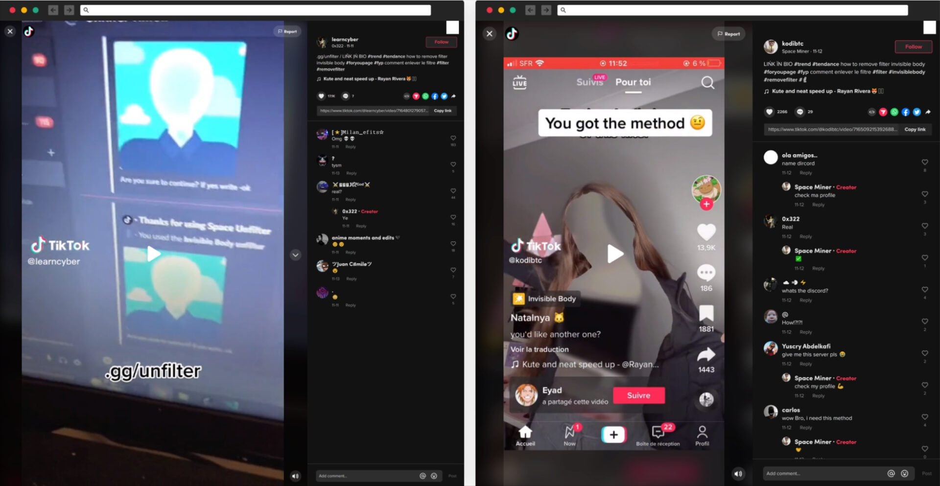 Il n’en fallait pas plus pour que les pirates tirent parti de la curiosité et de la frustration des voyeurs qui cherche une solution pour retirer le filtre des vidéos des autres utilisateurs. Pour cela, les hackers prétendent tout simplement offrir une solution pour supprimer l’effet du fameux filtre et ainsi exposer les corps.