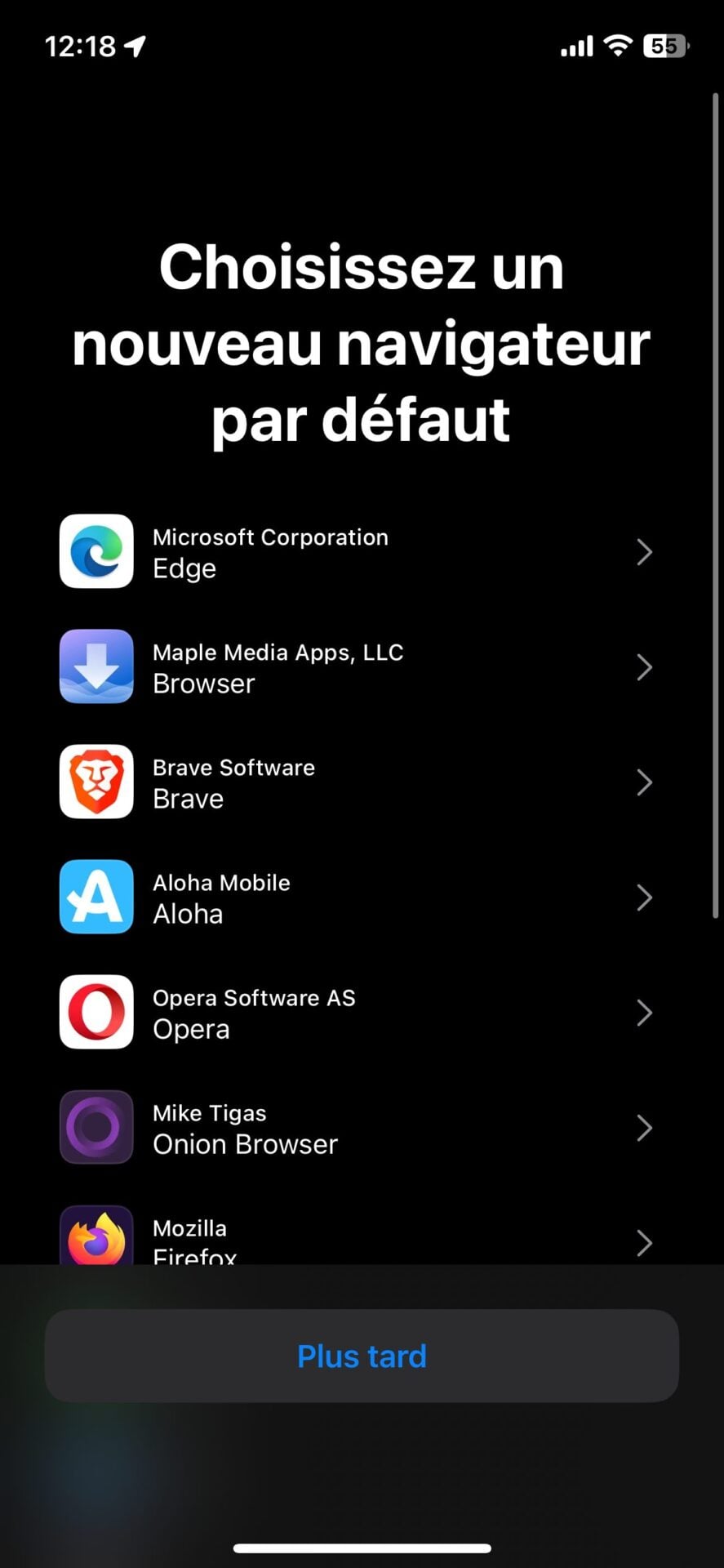 En Europe, les utilisateurs de l’iPhone vont également avoir le choix du navigateur par défaut. iOS 17.4 va en effet afficher, au premier lancement de Safari, un écran de configuration permettant de choisir un nouveau navigateur par défaut en lieu et place de Safari. Cerise sur le gâteau, les navigateurs Web tiers ne seront plus obligés d’utiliser Webkit, le moteur de rendu de Safari.