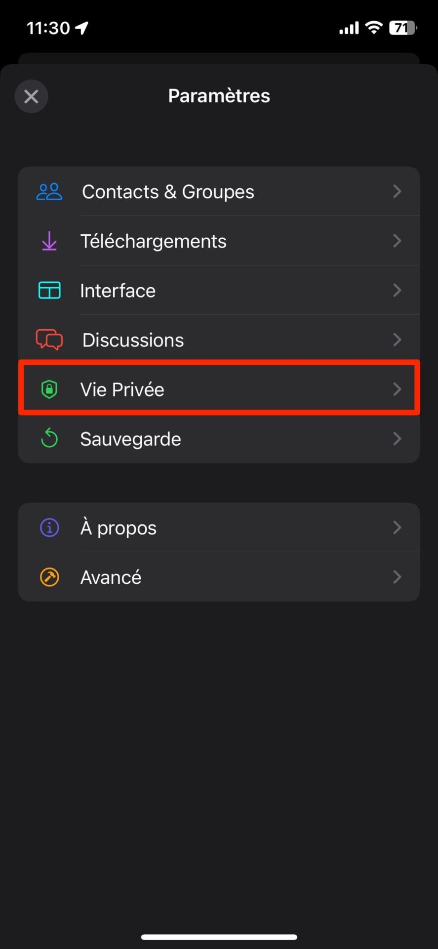 Passez en revue les différents paramètres proposés, notamment ceux concernant les Discussions (iOS) et Vie privée (Android) pour activer/désactiver les confirmations de lecture en fonction de vos préférences.
