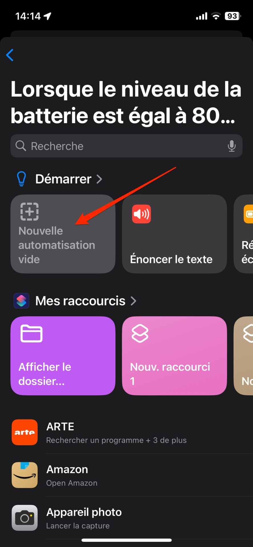 Ouvrez Raccourcis, placez-vous sur l’onglet Raccourcis, et appuyez sur le bouton + (si vous avez déjà des scripts d’automatisation présents) ou sur Nouvelle automatisation.