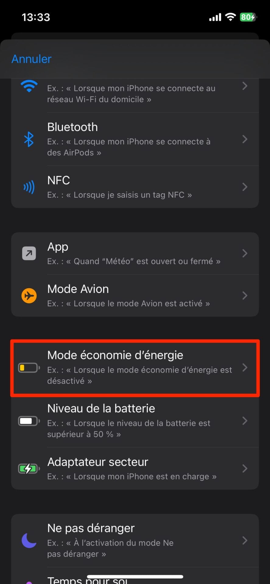 Désormais, à chaque fois que l’autonomie de la batterie de votre iPhone diminuera à 80 %, le Mode économie d’énergie se mettre automatiquement en route.