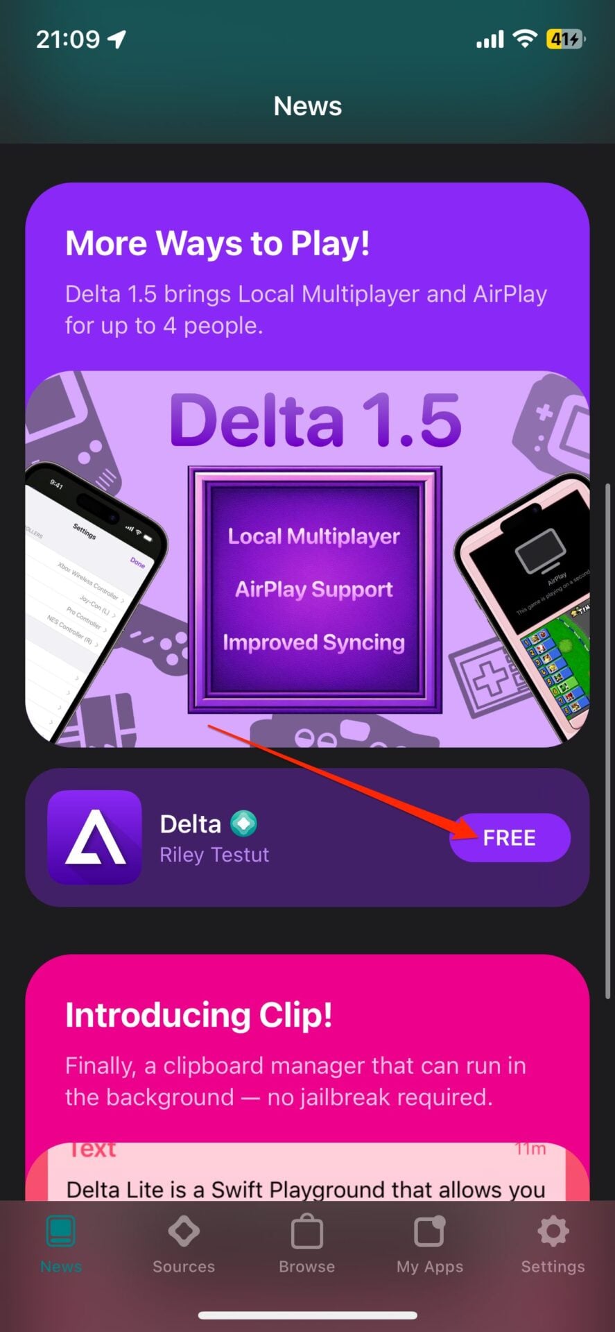 Pour l’ouverture officielle de sa boutique, Riley Testut, son développeur, a indiqué que deux applications étaient d’ores et déjà disponibles au téléchargement. La première, Delta, est un célèbre émulateur pour consoles Nintendo (Game Boy via GBA4iOS, DS, NES, SNES, N64). Et la bonne nouvelle c’est que Delta est totalement gratuit. La seconde application, Clip, est un gestionnaire de presse-papiers pour iOS. Celui-ci n’est cependant pas gratuit et requiert un don d’un petit euro pour être téléchargé.