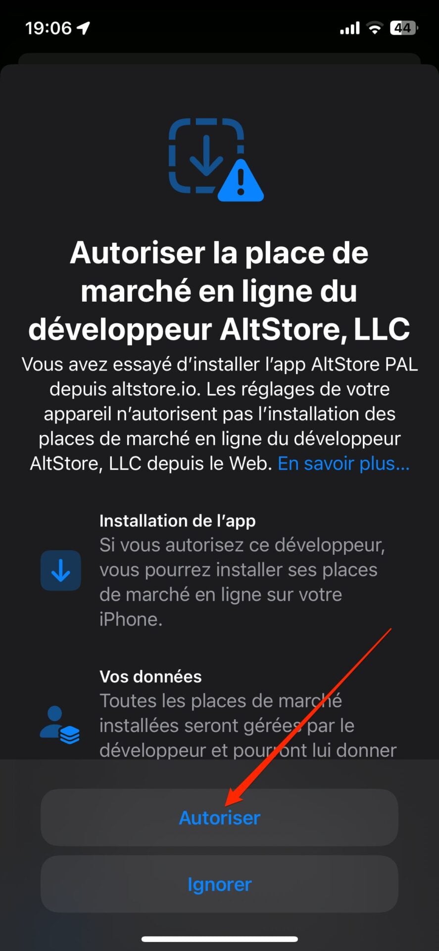 2. Autorisez l’installation de l’AltStore