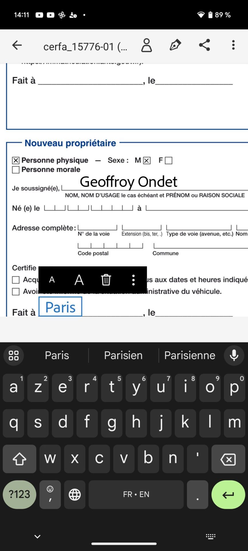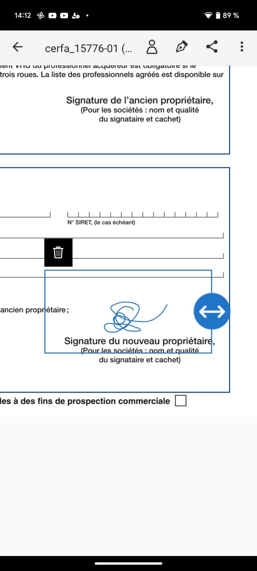 À partir de là, vous n’avez plus qu’à sélectionner chacun des champs à remplir pour y renseigner manuellement vos informations, ou les sélectionner directement depuis votre profil. Appuyez ensuite sur l’icône figurant un stylo plume pour y sélectionner votre signature (ou vos paraphes) qui sera alors apposée directement sur le document. Vous pourrez évidemment agrandir et déplacer celle-ci selon vos besoins.