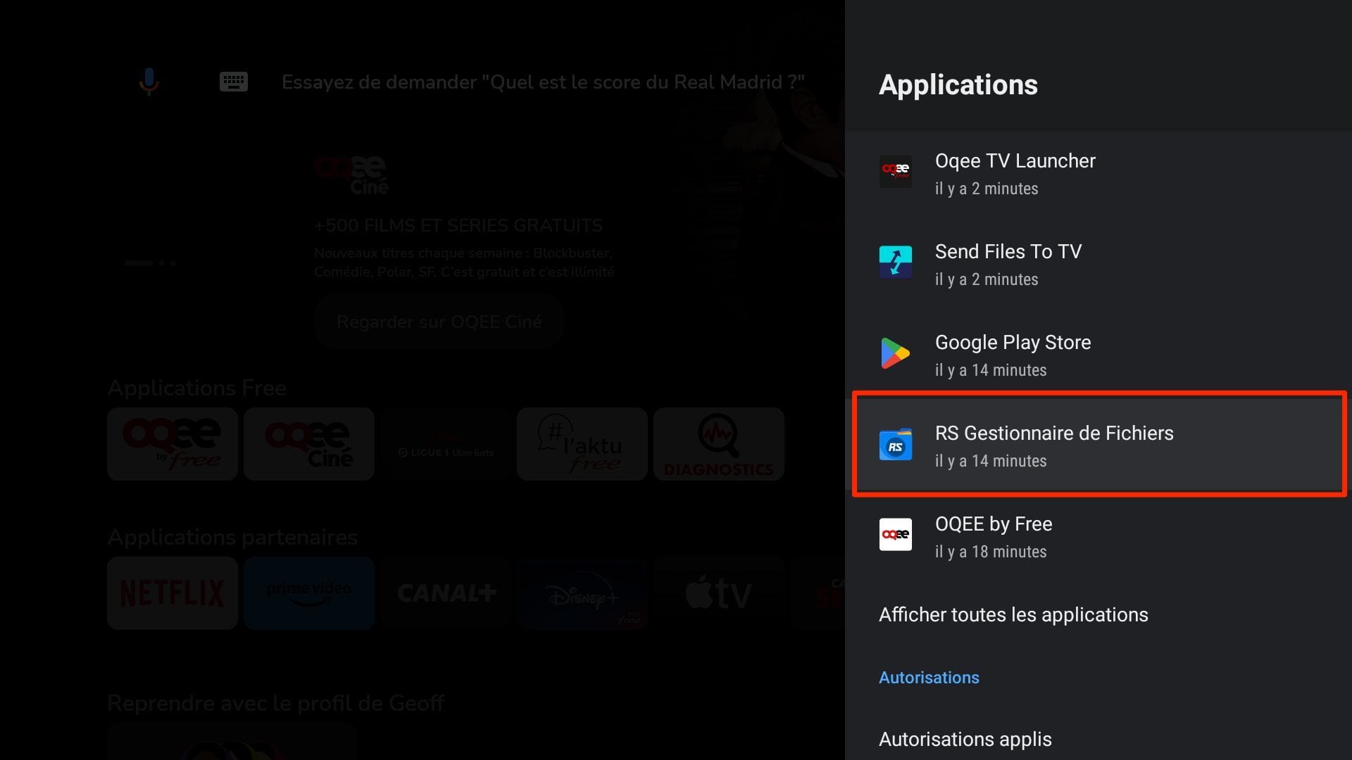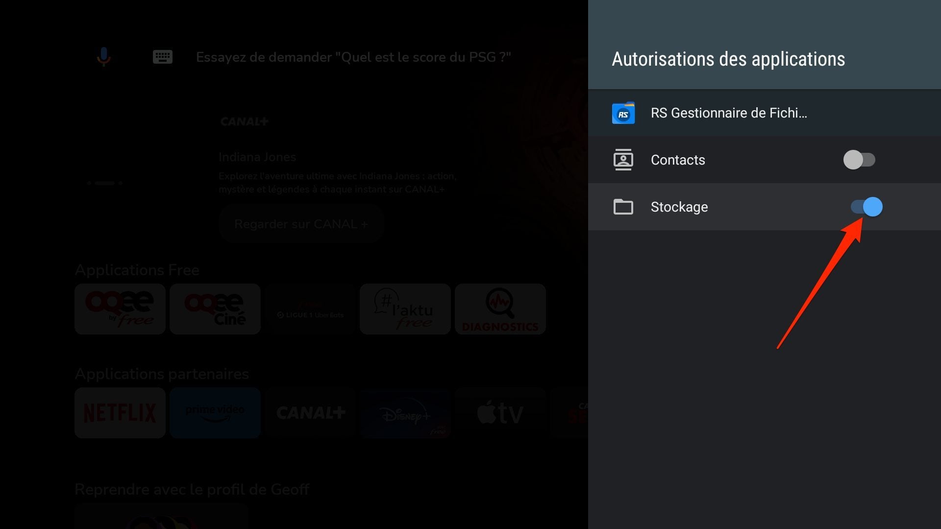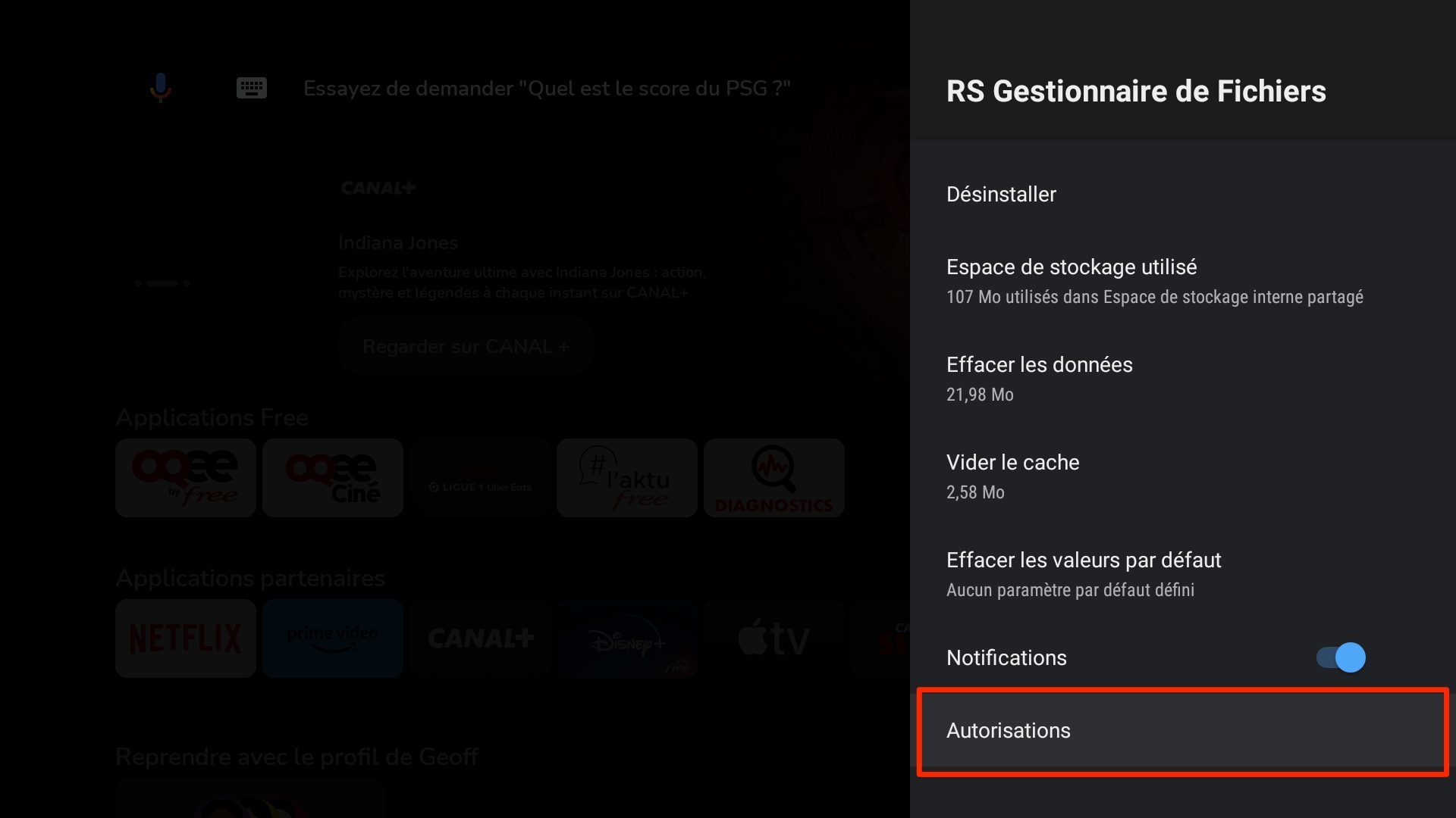 Maintenant que le gestionnaire de fichiers est installé sur votre Player Freebox Pop, vous devez lui donner les autorisations nécessaires pour fonctionner. Il doit en effet être autorisé à accéder au stockage de l’appareil, sans quoi il ne vous servira à rien.