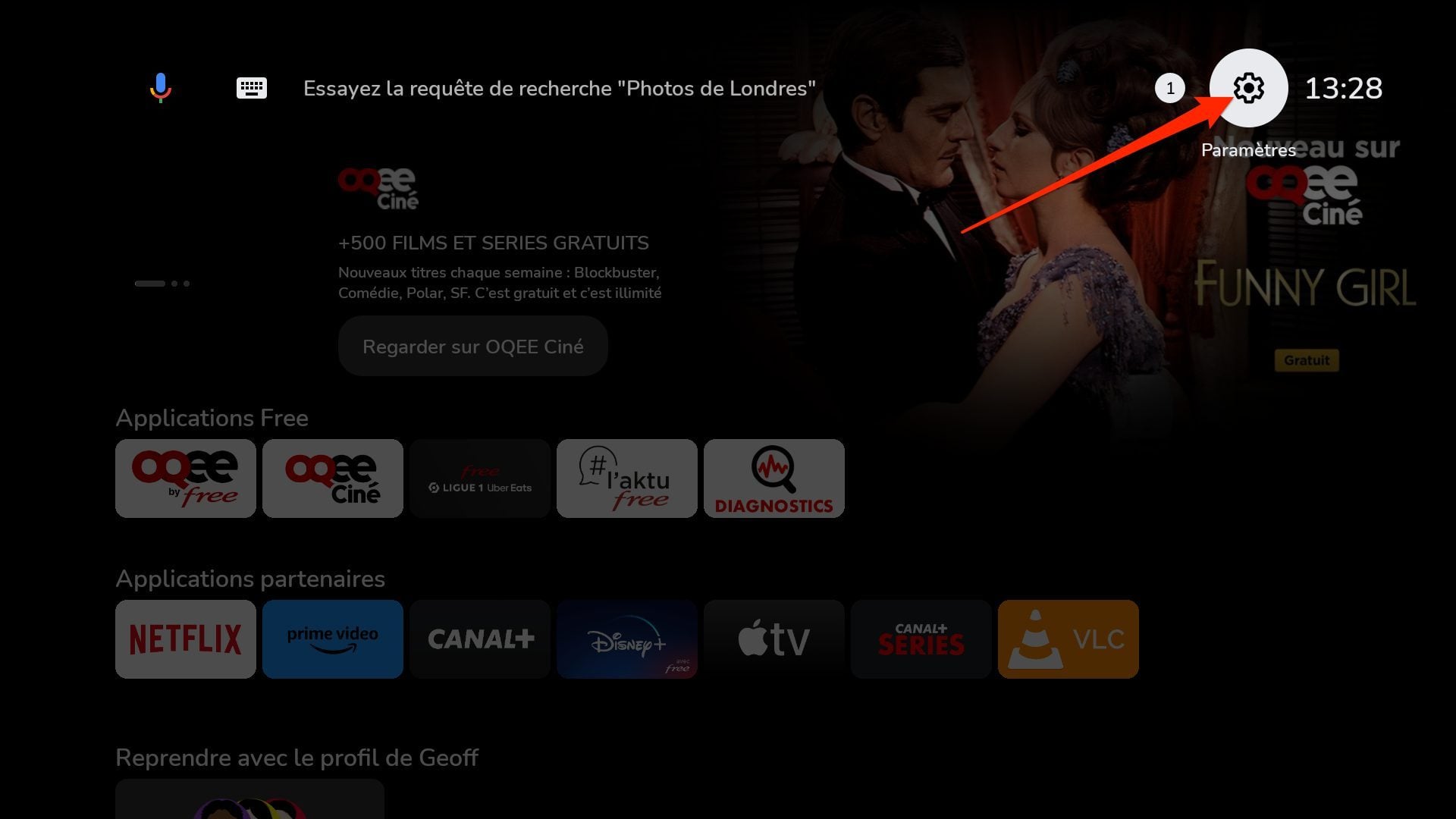 Comme vous l’avez fait pour le gestionnaire de fichiers, vous devez à présent autoriser Lemuroid à accéder au stockage du Player Freebox Pop. Pour cela, ouvrez les Paramètres, puis dans Applications, sélectionnez Lemuroid.