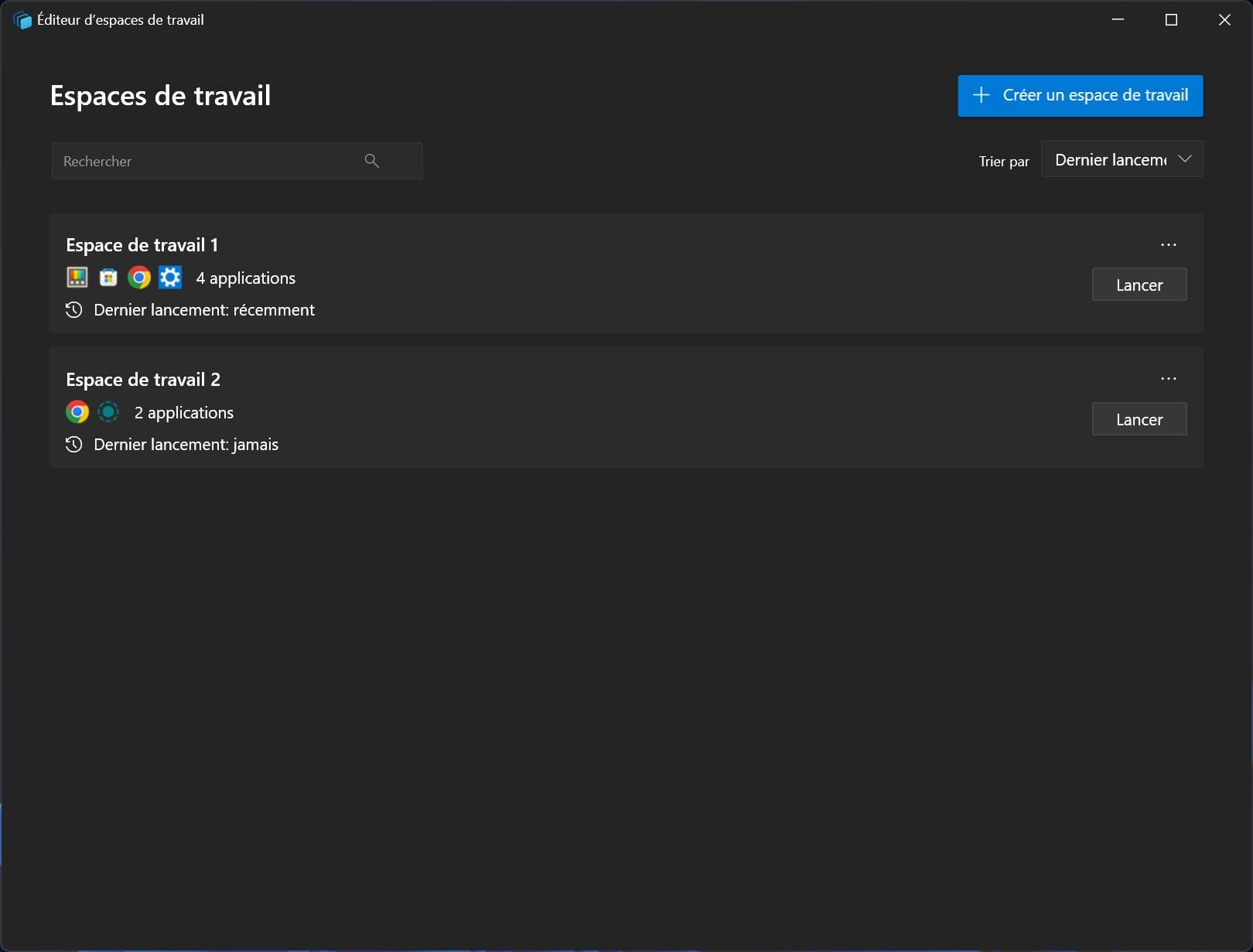 Une fois vos Espaces de travail créés, vous n’aurez plus qu’à lancer le module via le raccourci clavier idoine, puis cliquer sur le bouton Lancer associé à l’espace de travail que vous souhaitez utiliser. Vos applications vont alors s’ouvrir simultanément, et leurs fenêtres, se positionner, comme vous l’avez défini, sur votre écran. Un gain de temps certain si vous utilisez quotidiennement plusieurs bureaux Windows pour séparer vos différentes tâches.