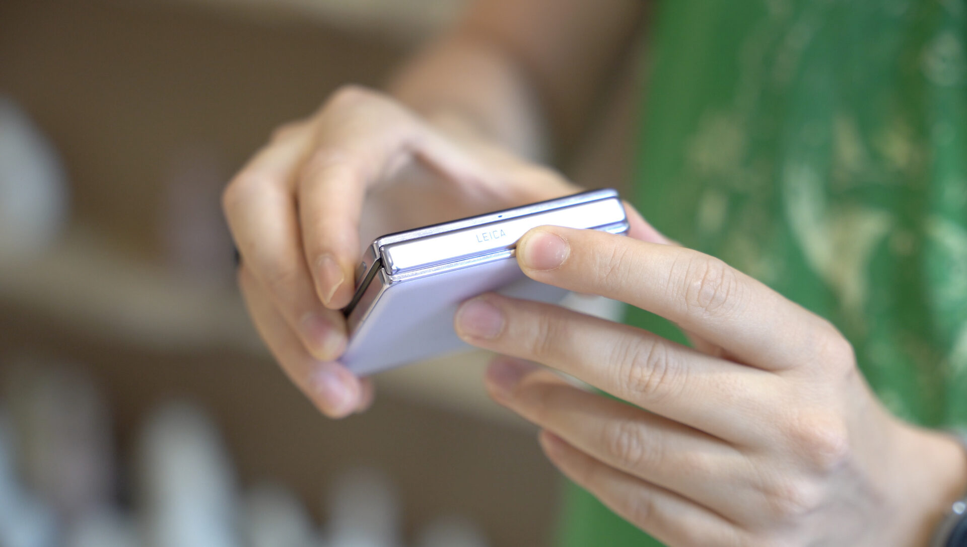 Un point rapide sur la charnière, qui arbore le logo Leica pour mettre en avant le partenariat entre les deux marques en photo. Celle-ci permet au smartphone de se fermer complètement. En résulte une certaine satisfaction à la fermeture. Nous avons aussi pu constater que la charnière permet l’usage en mode Flex du téléphone.