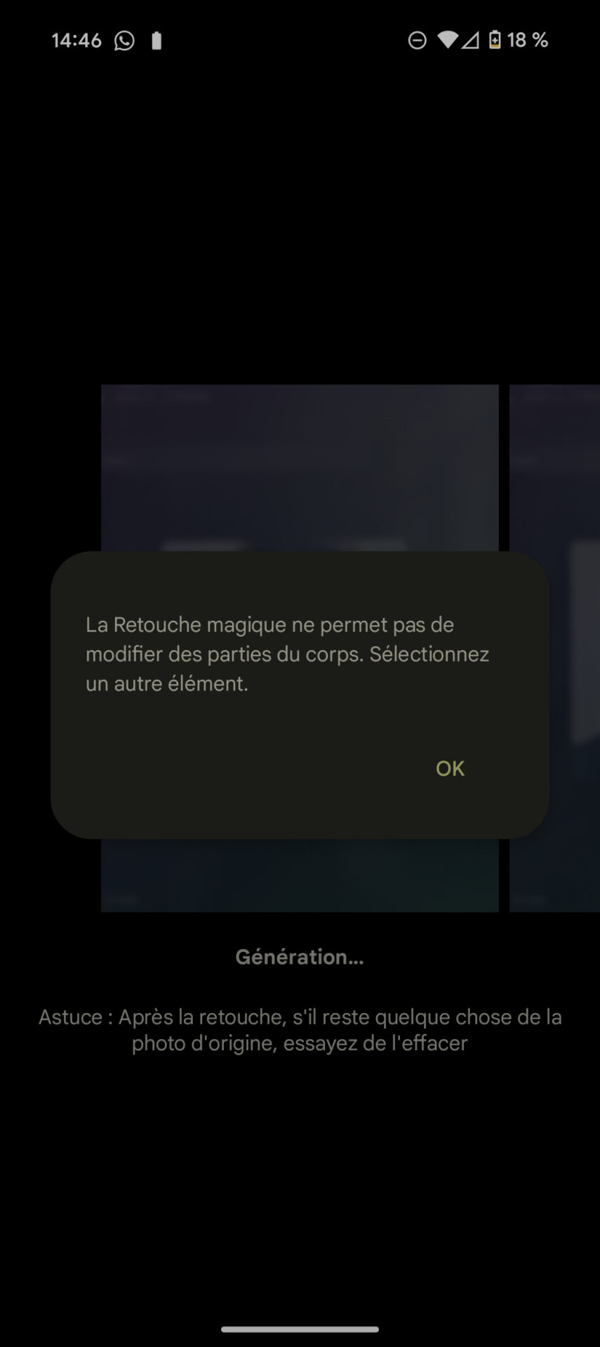 Google a réagi à la polémique naissante en déclarant que la retouche magique et Pixel Studio étaient conçus pour « respecter l’intention des requêtes des utilisateurs, ce qui signifie qu’ils peuvent créer du contenu potentiellement offensant lorsque l’utilisateur le demande ». Néanmoins, « tout n’est pas permis» et des garde-fous sont en place pour prévenir les abus. C’est le cas lorsqu’on essaie de modifier l’image d’une personne :