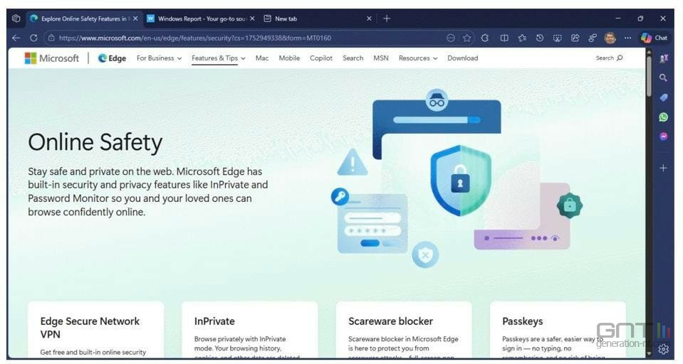 Le dispositif ne s’arrête pas à une simple bannière. Un clic sur le bouton « Naviguer en toute sécurité maintenant » ne fait pas que fermer la page de téléchargement. Il redirige l’utilisateur vers une page dédiée à la sécurité en ligne sur le site de Microsoft, détaillant les fonctionnalités comme la navigation InPrivate, le VPN intégré ou la surveillance des mots de passe. Une véritable session d’onboarding.