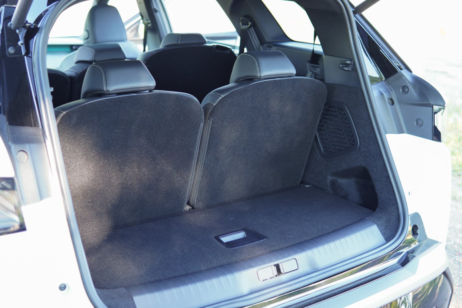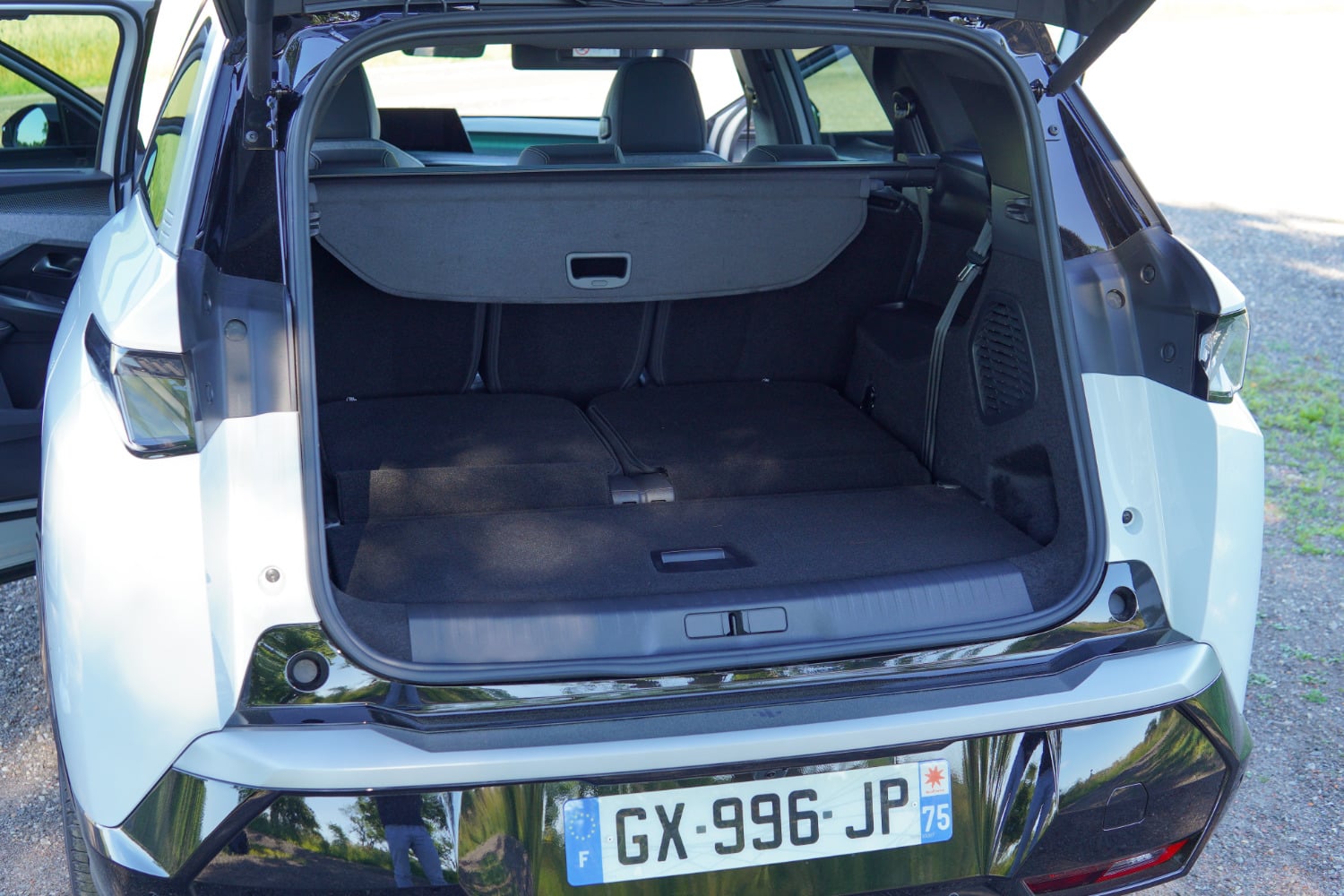 Pour obtenir une place suffisante pour deux adultes à l’arrière, le Peugeot e-5008 peut compter sur une largeur de 1,90 m. Malheureusement, du côté du coffre, celle-ci ne profite pas à l’ouverture. En effet, nous avons noté une ouverture quelque peu étroite, en plus d’un seuil de chargement assez haut. Cela s’explique par le soin accordé au confort de la rangée 3 une fois déployée, mais pour ceux qui ne l’utiliseraient pas, il faut tout de même noter ce point. Quant à la capacité du coffre une fois le rang 3 déployé, elle atteint 209 litres. C’est tout bonnement remarquable, en sachant qu’elle était deux fois moins élevée sur l’ancienne génération du 5008.