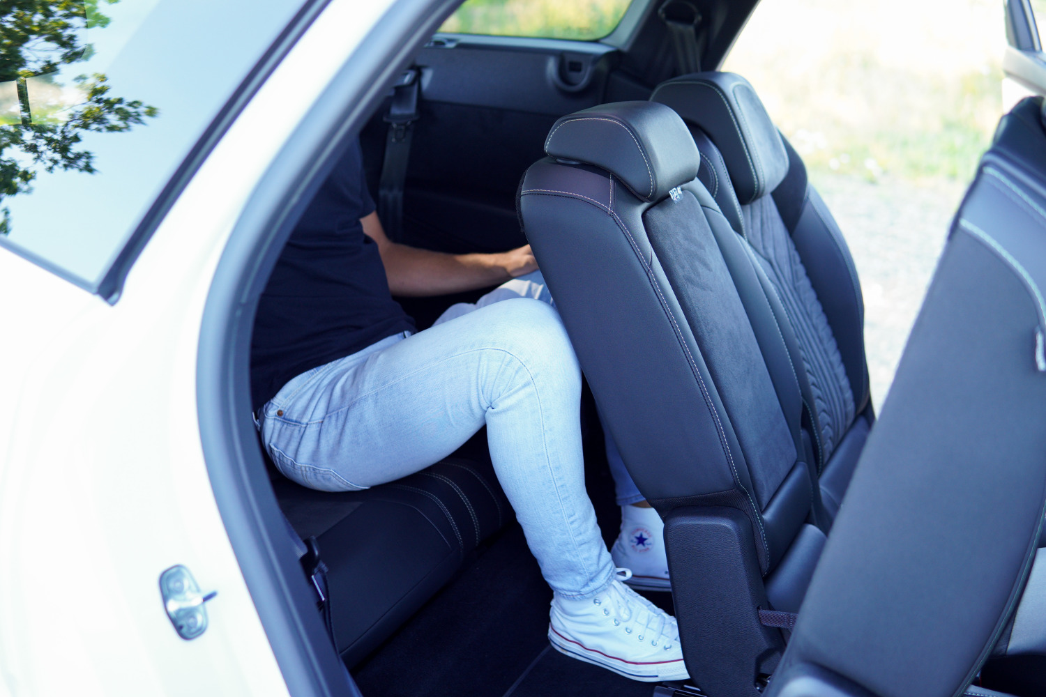 L’accès est aussi simplifié avec un raccourci de chaque côté qui permet de faire basculer les sièges de la seconde rangée. Depuis le dernier rang, on profite aussi d’un accoudoir, d’un porte-gobelet, et d’une fenêtre latérale qui n’auraient eu qu’à pouvoir être entrebâillés pour que le passager puisse évoluer de façon totalement autonome et en confort au rang 3.