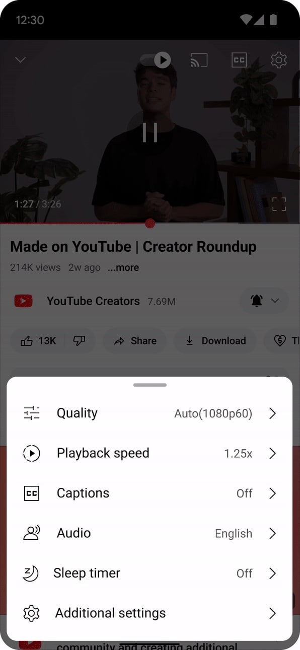 C’est loin d’être terminé. YouTube propose également un réglage granulaire de la vitesse de lecture (avec des incréments de 0,05) ; l’interface s’améliore aussi au format paysage sur les mobiles ; les vignettes et le texte sont plus gros ; un système de badges va permettre aux créateurs de « gamifier » les vidéos auprès de leurs utilisateurs.