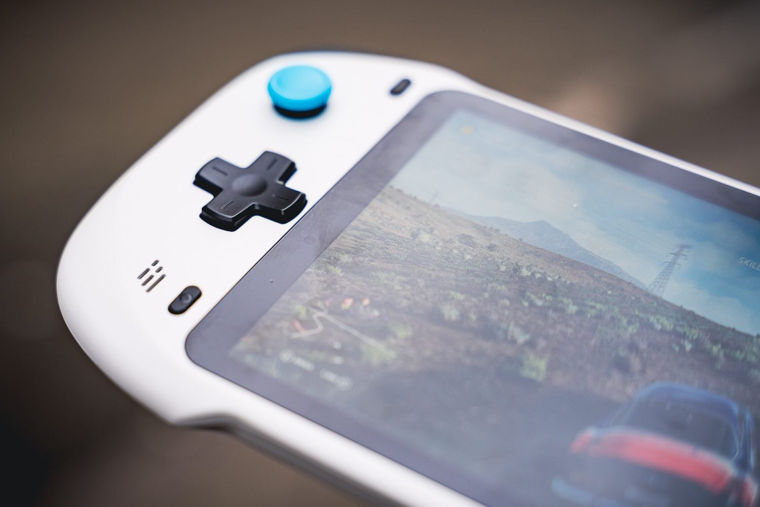 À commencer par son écran LCD 1080p en 16/9 de 7 pouces. Celui-ci est bien sûr loin des standards de l’Oled, mais pour ce prix, il est plus que convenable. Avec une résolution de 314 ppp, nous n’avons jamais eu l’impression de voir les pixels. Si les couleurs nous ont parfois parues un poil trop poussées dans les verts et les bleus, et que la luminosité n’échappe pas à quelques reflets, en termes de rapport qualité prix, cela reste excellent. Précision importante : il s’agit bien d’un écran tactile, ce qui permet d’aider occasionnellement à la navigation dans certaines apps.