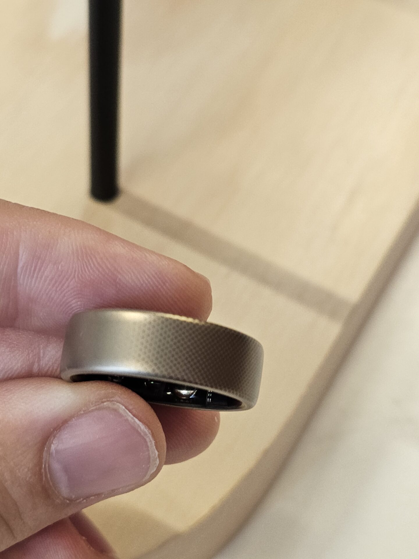 À l’instar de nombreuses montres de sports, nous sommes loin d’une bague que l’on pourrait porter comme un bijou. Comme toute bague connectée, cet anneau connecté cache ses capteurs de fréquence cardiaque à l’intérieur de l’anneau comme vous pouvez le voir sur les clichés ci-dessous.