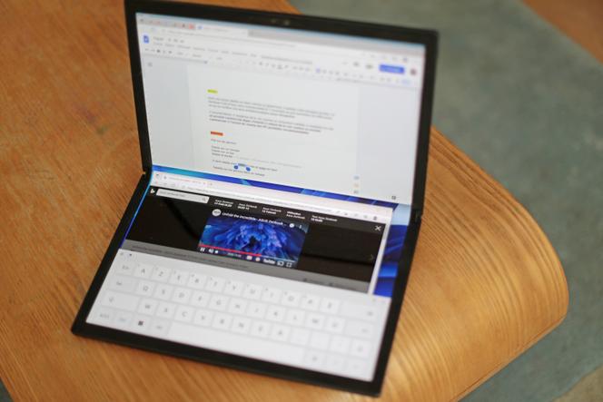 D’autres problèmes sont aussi apparus à l’usage. Son clavier n’est pas alimenté : il fonctionne sur batterie et, s’il n’est pas rechargé tous les deux jours, il tombe en panne. Il faut alors le ranimer en le connectant à la prise USB-C de l’ordinateur avec un câble (non fourni). Quant au pied de l’ordinateur, qui n’est pas ajustable, lorsqu’on lance une visioconférence on ne voit que les cheveux des participants. En rusant un peu, le Zenbook Fold se révèle être un outil particulièrement efficace.