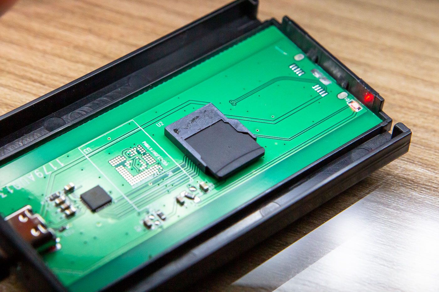 Eh non, pas de SSD à l’horizon, mais un simple… lecteur MicroSD avec une carte -sans aucune capacité de stockage visible- insérée à l’intérieur ! Nous l’avons illico insérée dans un lecteur de carte, sans donc passer par le contrôleur de l’appareil, nous accédons enfin à sa véritable capacité de stockage : 58,61 Go. Autrement dit un support que l’on peut dégoter à moins de 10 euros. Vous pensiez faire une bonne affaire avec ce SSD au prix mini ? C’est l’inverse : vous avez payé votre stockage presque dix fois trop cher.