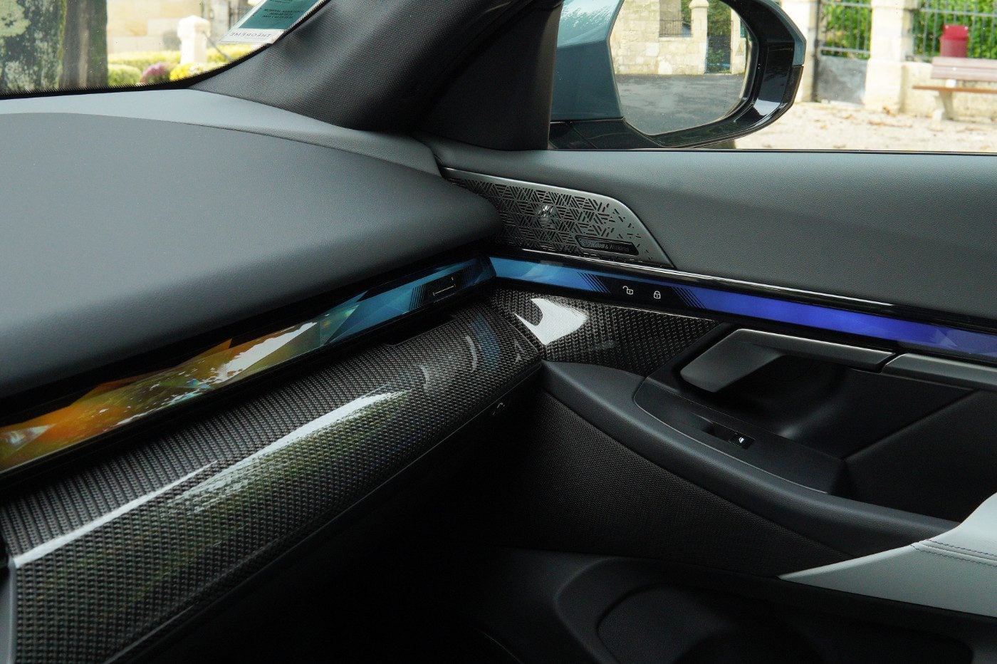 La nouvelle i5 emporte donc toute la gamme thermique et hybride de la Série 5 avec elle. Pour loger les batteries, ses dimensions explosent comparées à la précédente génération. 9,7 cm de plus en longueur, 3,6 cm de plus en hauteur, et 3,2 cm de plus en largeur… sans que cela ne soit vraiment perceptible. La berline de 5,06 mètres se rapproche des dimensions de celle qui était sa grande soeur jusqu’à présent – la Série 7 -, mais sa silhouette ne change pas pour autant. L’espace à bord ne profite pas tant du rallongement, surtout au niveau des places arrière.