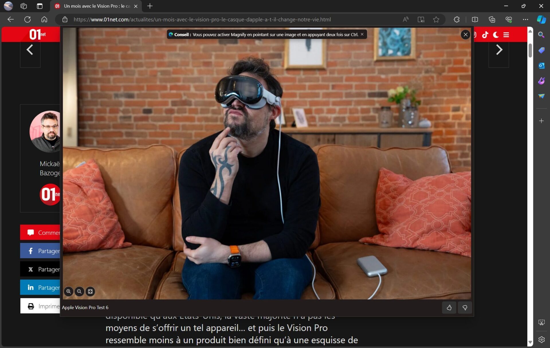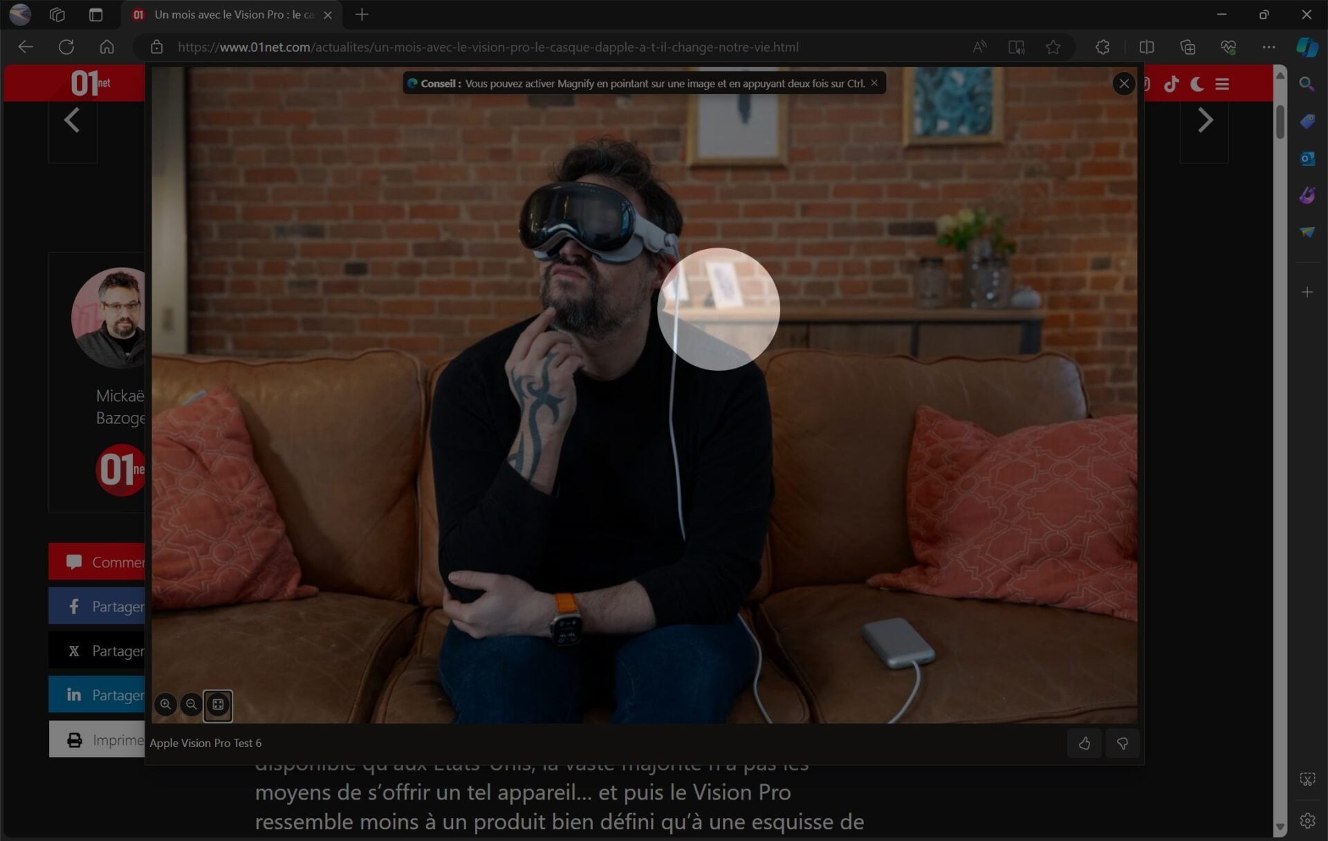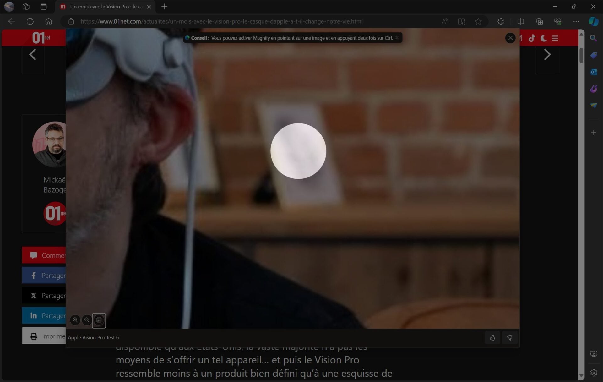 Edge affiche par ailleurs une bulle dans laquelle est écrit un conseil : « Vous pouvez activer Magnify en pointant sur une image et en appuyant deux fois sur Ctrl ».