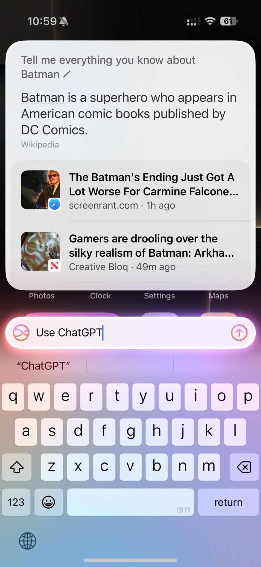 Avec iOS 18.2, ChatGPT vient donner un coup de main secourable à Siri qui n’est pas l’assistant le plus futé du marché. Première découverte de cette intégration qui va au-delà des simples requêtes texte.