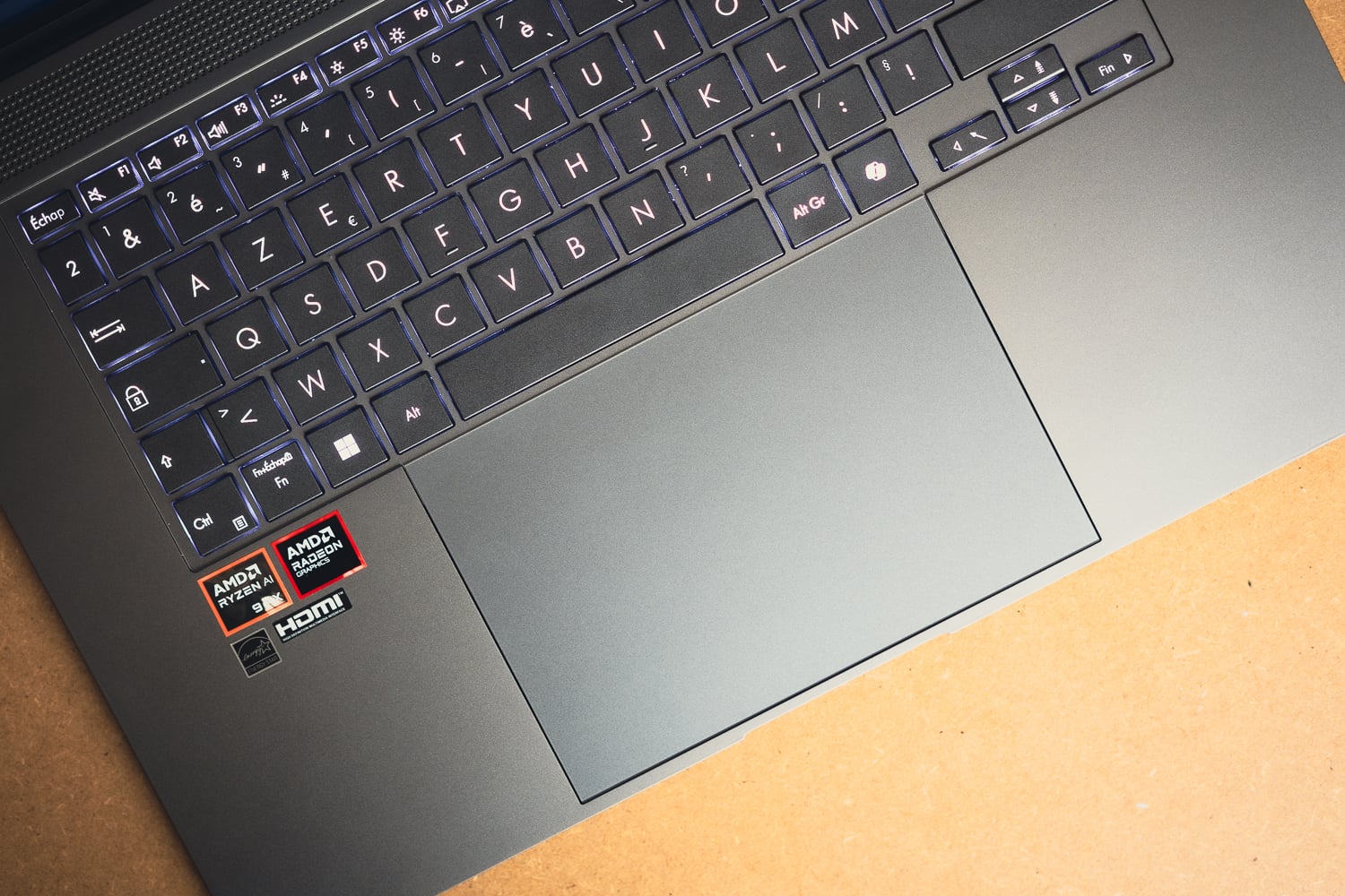 Ah, et en parlant d’éléments qu’on finira par oublier, le clavier intègre bien une touche Copilot, qui permet de lancer le chatbot dopé à l’IA générative de Microsoft. Nous n’en avons eu qu’une utilité limitée lors de notre test. Profitons-en pour préciser que Copilot+, la suite logicielle complète de fonctionnalités IA de Microsoft devrait arriver d’ici la fin d’année sur cet appareil. Il a en tous les cas 50 TOPS à faire valoir sur son NPU et remplit donc largement le cahier des charges de Microsoft qui s’établit à 40 TOPS.