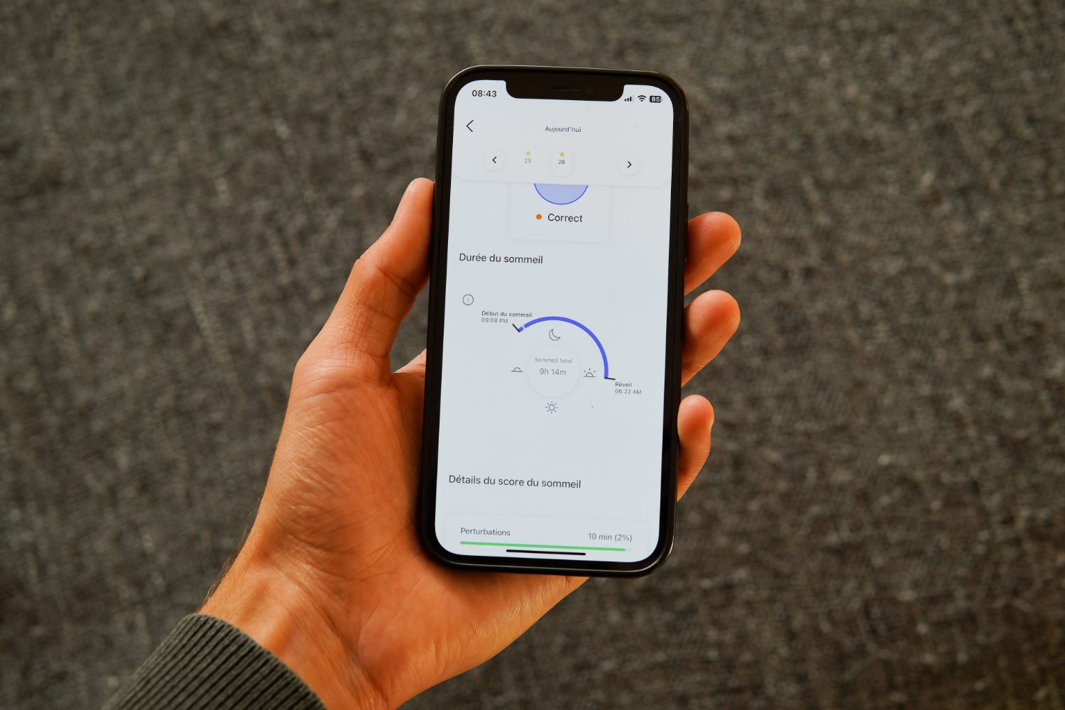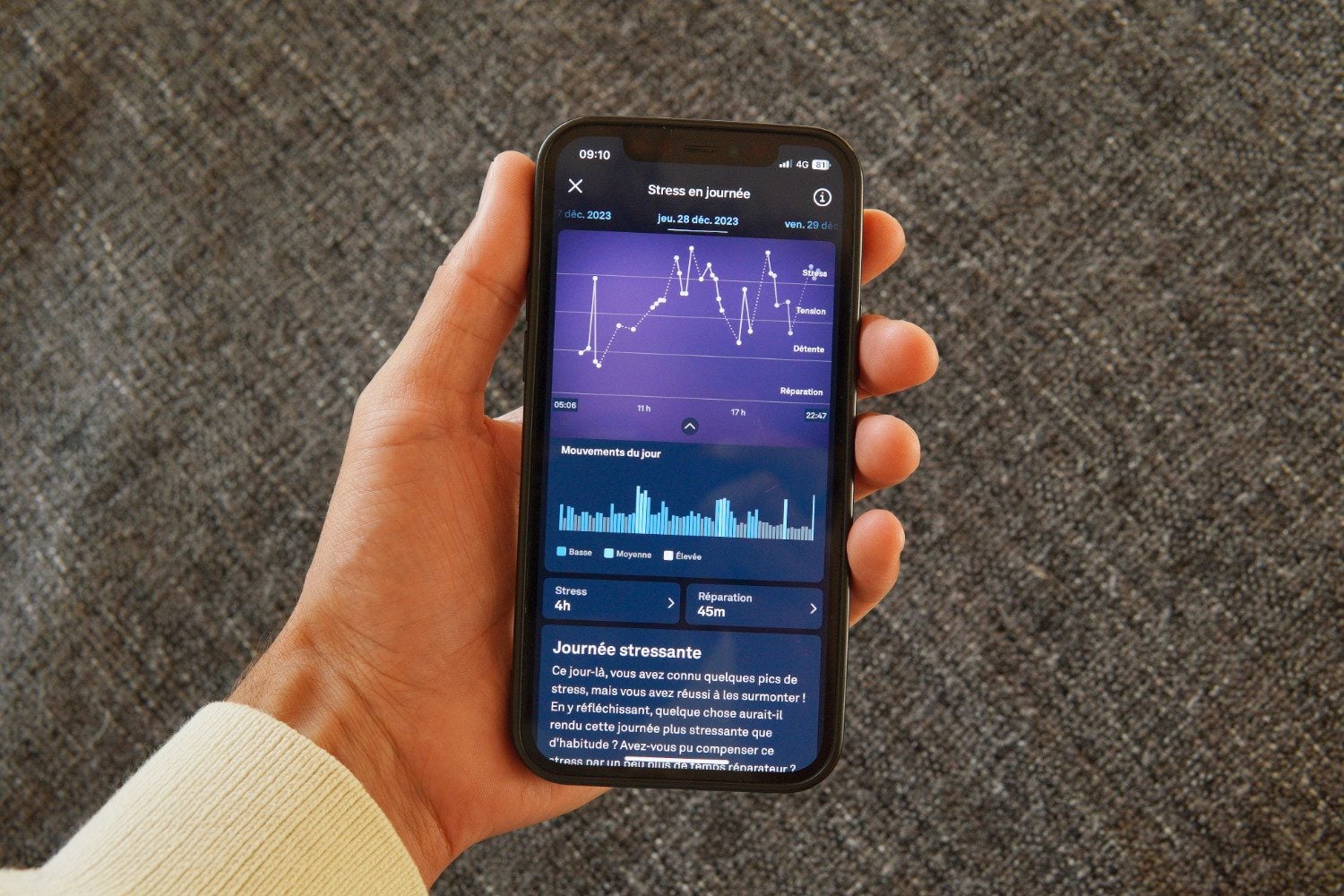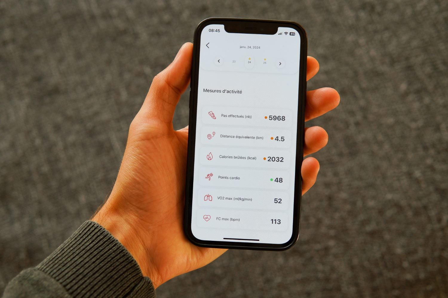Circular affiche bien toutes les mesures que prennent les capteurs de sa bague, mais l’affichage de son application ne permet pas d’avoir un aperçu aussi simple que celui de Circular. Les données y sont plus brutes, et nous avons vite fait de quitter l’application, faute de ne pas y trouver plus de traitement des données. Il y a bien un assistant virtuel, qui propose chaque jour un compte rendu, mais ce dernier ne fait que lire des informations brutes, que l’on peut lire soi-même en parcourant l’application. Certaines données ne semblent pas suffisamment détaillées non plus.