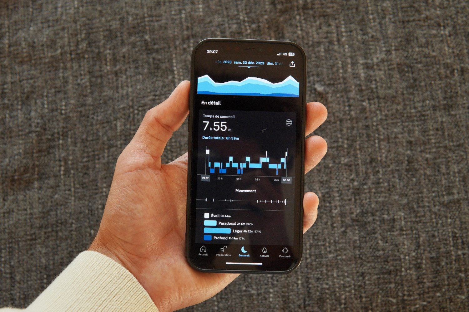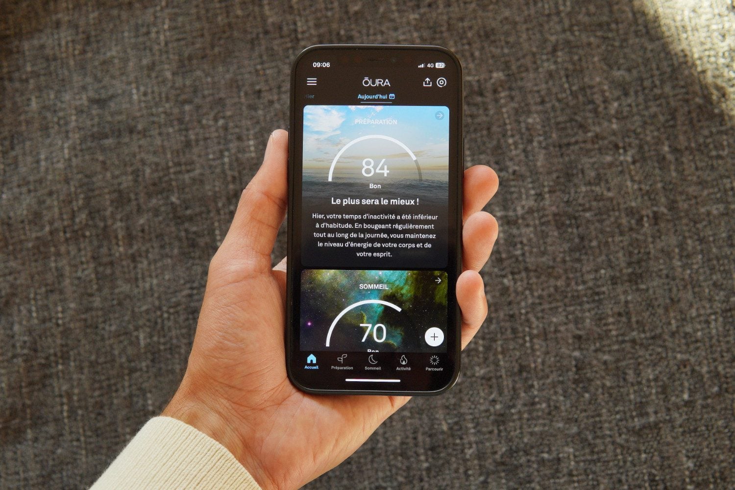 Oura, ces derniers mois n’a pas changé grand-chose à son application qui reste particulièrement bonne. On retrouve bien plus que des données : tout y est analysé, et au lieu de simplement donner des mesures brutes, elle range en trois catégories celles-ci pour nous permettre de mieux comprendre notre santé et notre hygiène de vie. Ainsi, les informations sont croisées, un score dit « de préparation » est affiché, censé nous présenter notre santé globale, en prenant en compte notre sommeil, notre activité physique, et plusieurs paramètres de santé comme notre régularité, notre température corporelle, notre rythme cardiaque et notre respiration.
