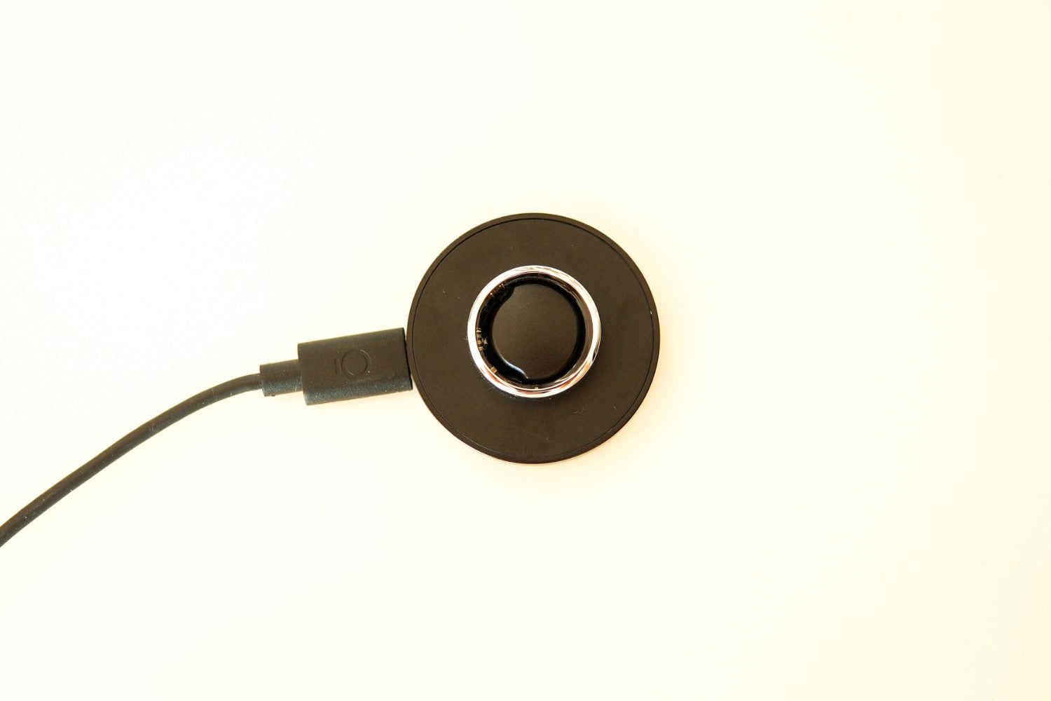 Sur le socle de la Oura Ring 3, il n’y a pas ce problème. La bague est guidée pour s’intégrer parfaitement au niveau de la recharge, et le socle dispose d’un câble.