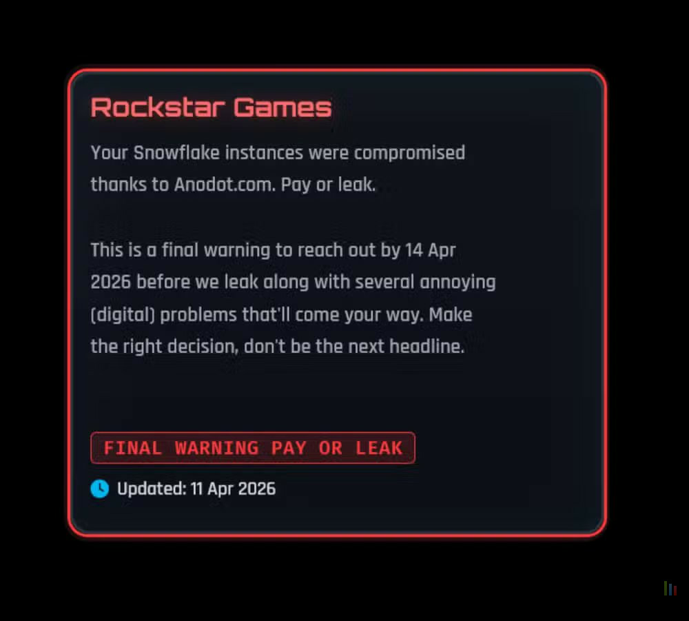 Le géant du jeu vidéo est de nouveau dans la tourmente. Le célèbre groupe de hackers ShinyHunters revendique l’exploit et met la pression sur le développeur de GTA 6. Le groupe serait à l’origine d’une intrusion via un service tiers, l’outil d’analyse Anodot, qui leur aurait ouvert les portes de l’entrepôt de données Snowflake de Rockstar.