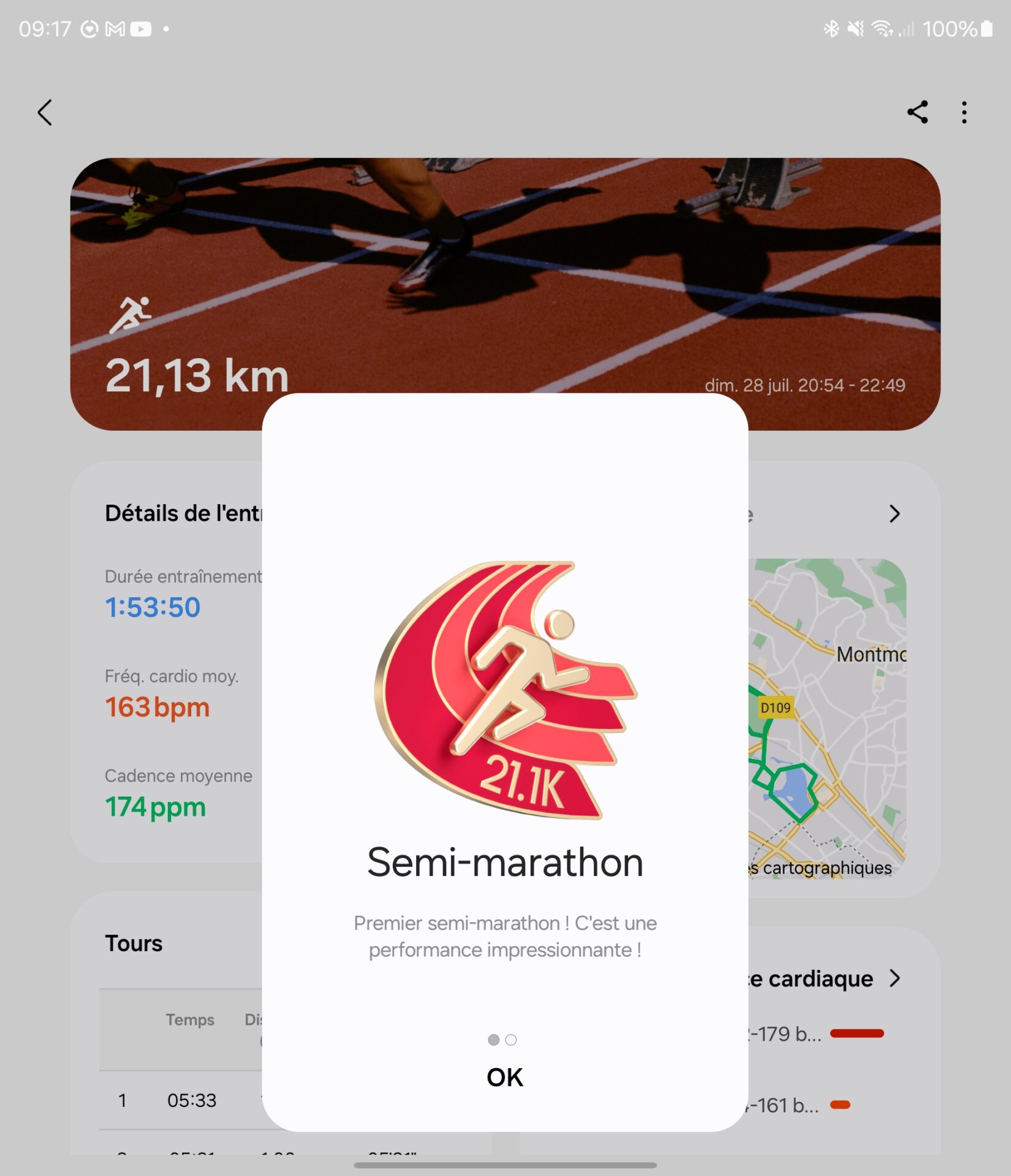 Le bilan est également positif pour ce qui est de la mesure de la fréquence cardiaque en cours d’activité. Mis à part quelques écarts sur des exercices de fractionné, la Galaxy Watch indiquait la même fréquence cardiaque moyenne que notre montre de référence.