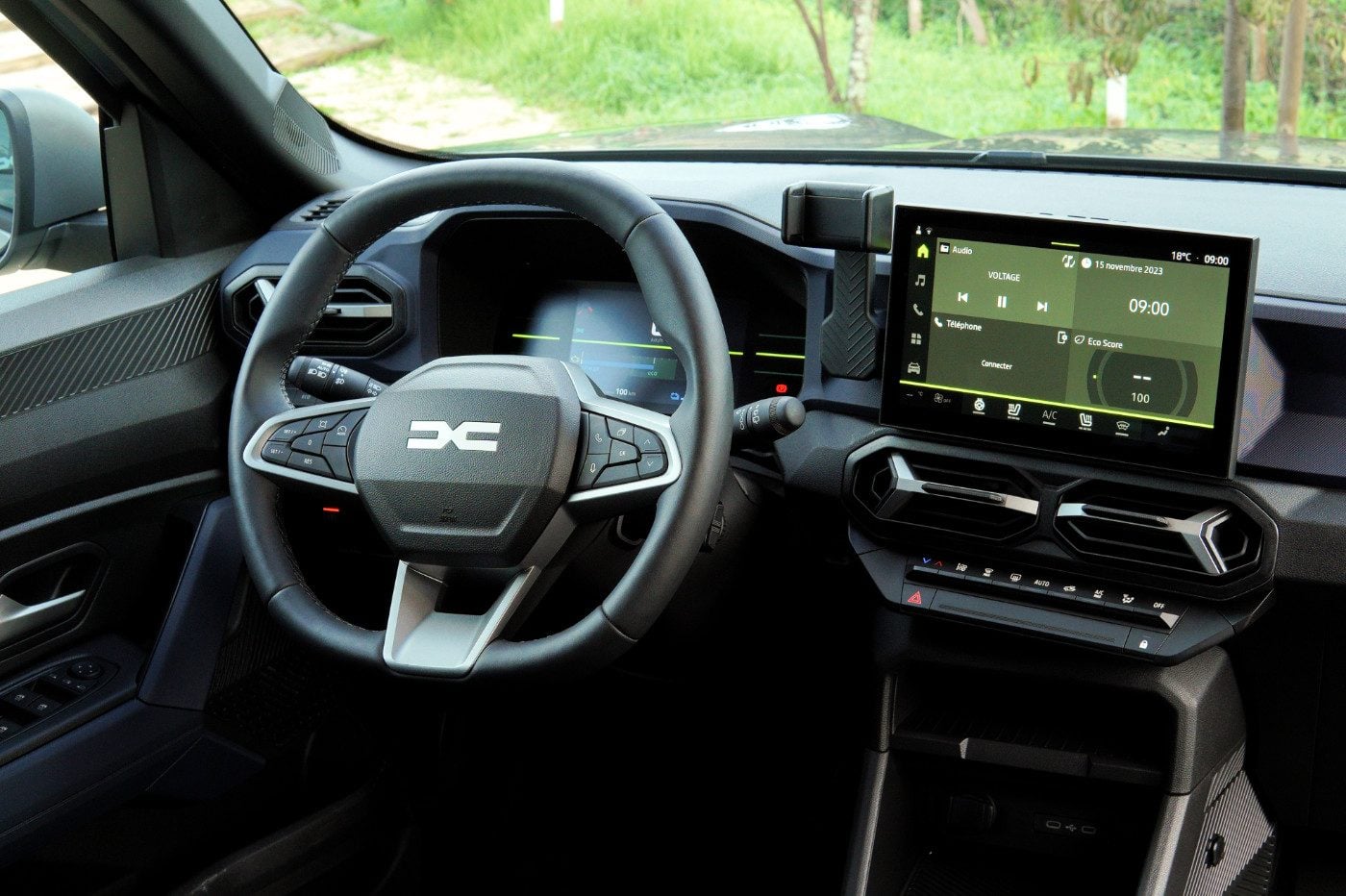 Pour les finitions, Dacia propose maintenant la climatisation manuelle de série, sur tous ses modèles, mais seuls le Dacia Duster Extreme et Journey ont la climatisation automatique. Ils sont aussi les seuls avec le système d’attache YouClip, la navigation connectée et l’accès au téléchargement d’applications, le système audio Arkemys et le chargeur sans fil. On optera pour le niveau Expression pour obtenir l’écran central de 10 pouces compatible Car Play et Android Auto, la caméra de recul, et l’écran numérique derrière le volant.