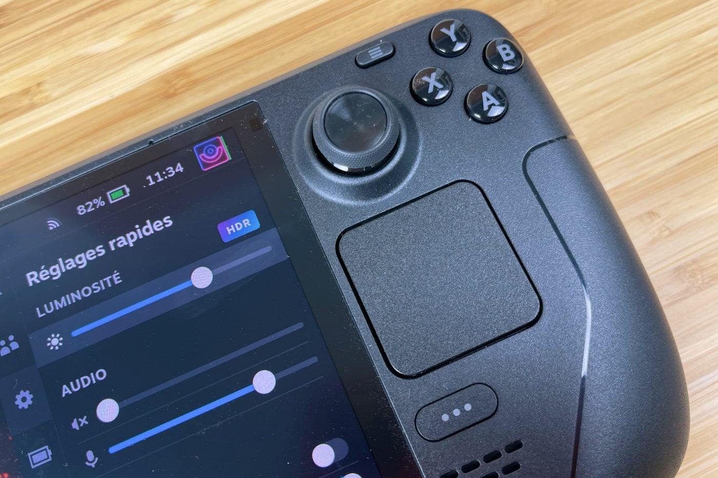 Pourquoi changer une équipe qui gagne ? Le Steam Deck OLED reprend donc de son prédécesseur les deux sticks analogiques, la croix directionnelle et les boutons ABXY, les deux pads tactiles, les quatre gâchettes et les quatre boutons au dos. Ces contrôles sont configurables en fonction des jeux, même si par défaut le Steam Deck va faire son possible pour qu’on puisse jouer sans effort particulier ni réglages à bidouiller.