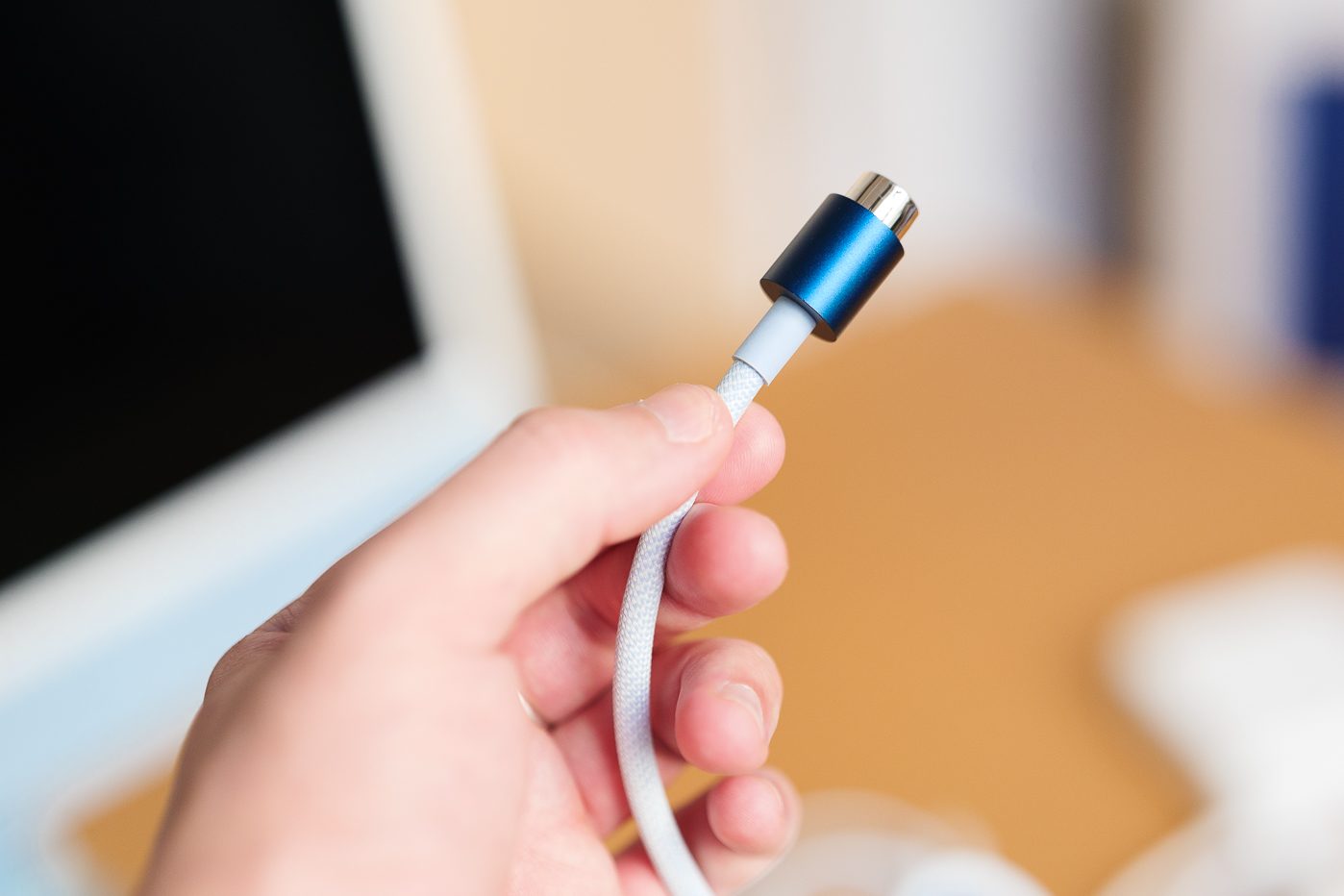 C’est notamment parce qu’Apple fait preuve de ce sens du détail qu’il est encore plus étonnant de trouver sur l’iMac 24 un connecteur… Lightning. En effet, quelques semaines après avoir fait du passage des iPhone et des AirPods à l’USB-C un événement, Apple lance un nouveau produit doté de son connecteur propriétaire. Cette décision qu’on imagine motivée par des raisons économiques est difficilement justifiable et ce n’est pas le câble tressé et légèrement bleuté qui fera passer la pilule.