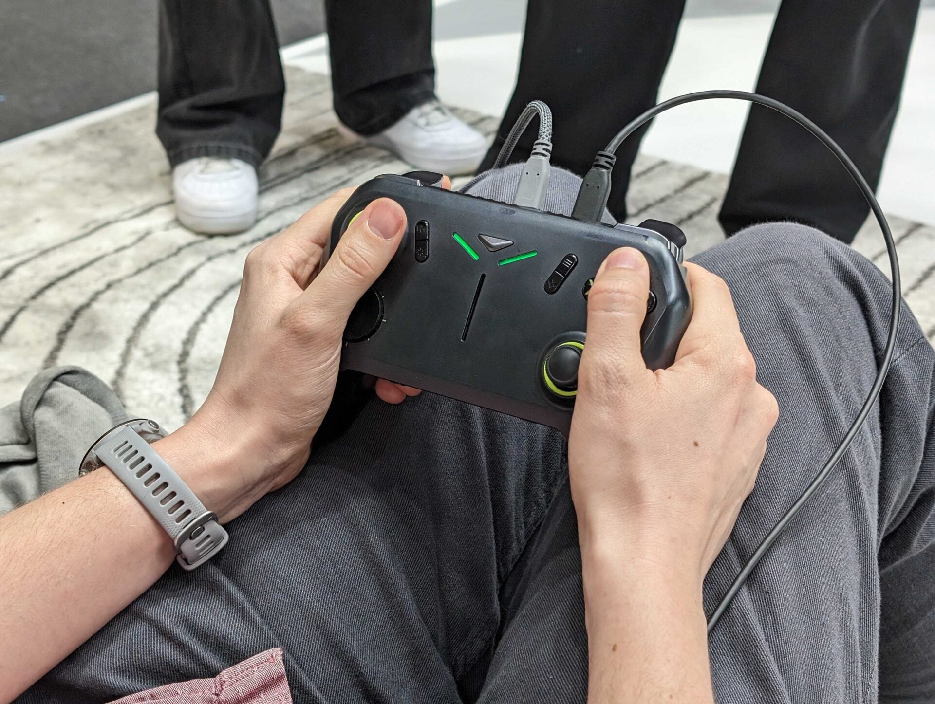 Et en parlant d’Xbox, ce PC-manette fonctionne d’ailleurs sous Windows 11, même si nous n’avons pas pu voir comment se déroulait la navigation sur l’appareil. D’après le constructeur, une surcouche est proposée par-dessus Windows afin d’éviter d’imposer une navigation à la souris, toujours compliquée avec un joystick.