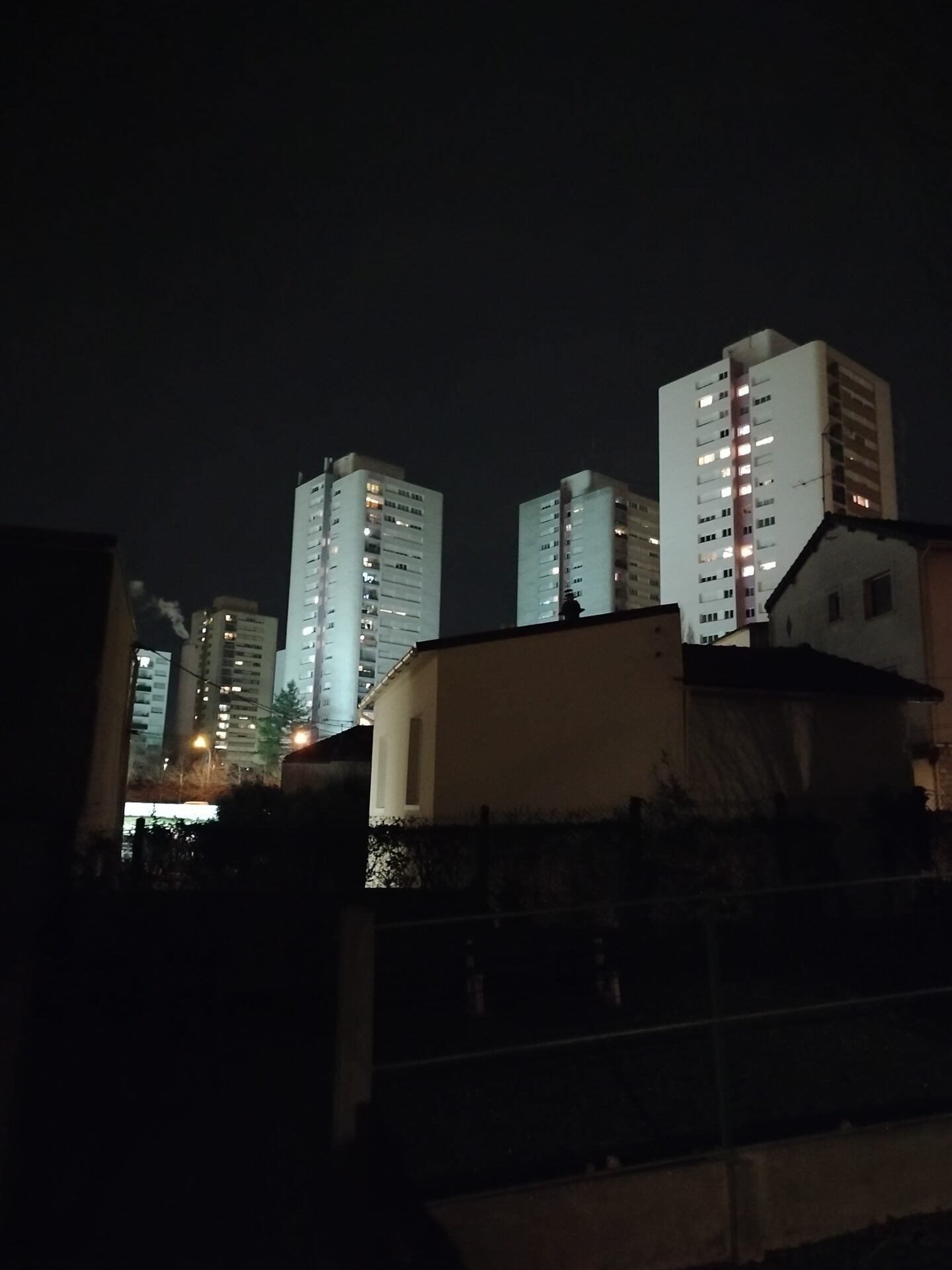 De nuit, le Realme C67 fait de son mieux et délivre une scène très bruitée où peu de détails ont été conservés.