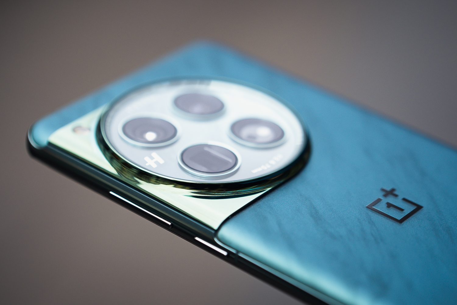 Pour notre test, nous avons reçu la version verte du OnePlus 12, avec son dos effet marbré. Le revêtement adopte un toucher doux qui accroche très légèrement. Le logo OnePlus est légèrement creusé pour donner un effet de texture, avec un revêtement plus lisse.