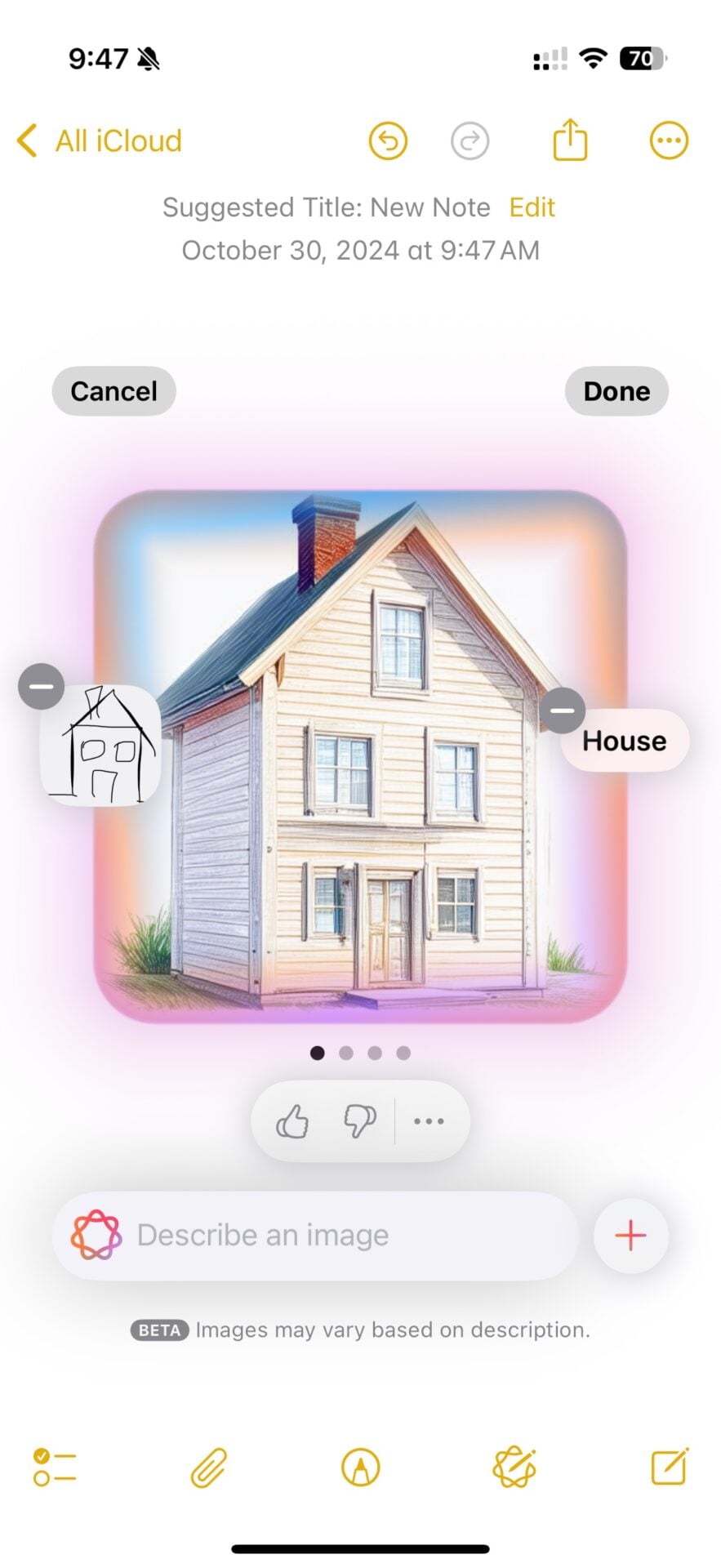 Image Playground, qui génère des images avec l’aide d’Apple Intelligence, n’est pas qu’une application en solo : elle trouve une place dans Notes pour créer des visuels à partir d’un brouillon. Démonstration.