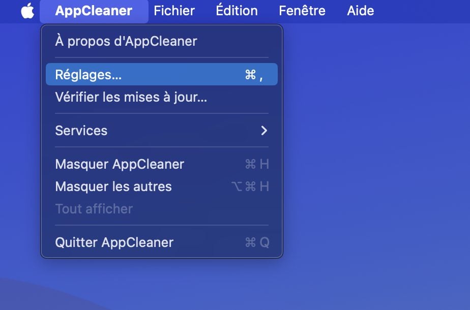 Si la manipulation n’a rien d’insurmontable, vous conviendrez sans doute qu’elle s’avère un peu plus contraignante que la bonne vieille méthode de l’envoi à la corbeille. Sachez qu’il est possible d’associer le meilleur des deux mondes. AppCleaner dispose en effet d’une option lui permettant de se déclencher automatiquement dès lors que vous envoyez une application à la corbeille. Pour l’activer, cliquez sur le menu AppCleaner, puis entrez dans les Réglages de l’application, ou utilisez directement le raccourci clavier Cmd + , . Sélectionnez ensuite l’onglet SmartDelete, puis activez l’option associée.