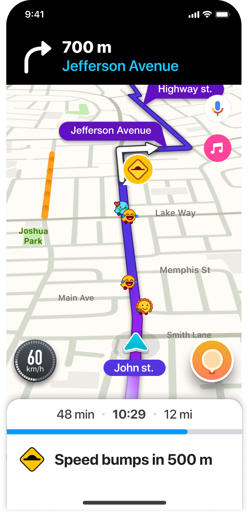 Des alertes pour les ralentisseurs et les virages serrés sur la carte
