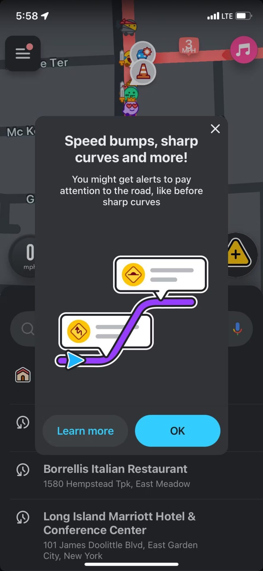 L’arrivée de ces nouveaux outils dans Waze Map Editor n’aura pas nécessité beaucoup de temps aux contributeurs pour que les premières alertes s’affichent en temps réel sur les écrans des utilisateurs. Comme le rapportent nos confrères de SiLive, relayés pas 9to5Google, certains utilisateurs de Waze ont vu s’afficher au cours des derniers jours, une notification les informant que la carte allait indiquer de nouvelles alertes de dangers. Ces nouvelles alertes concernent notamment la présence de ralentisseurs et de virages dangereux sur le trajet.