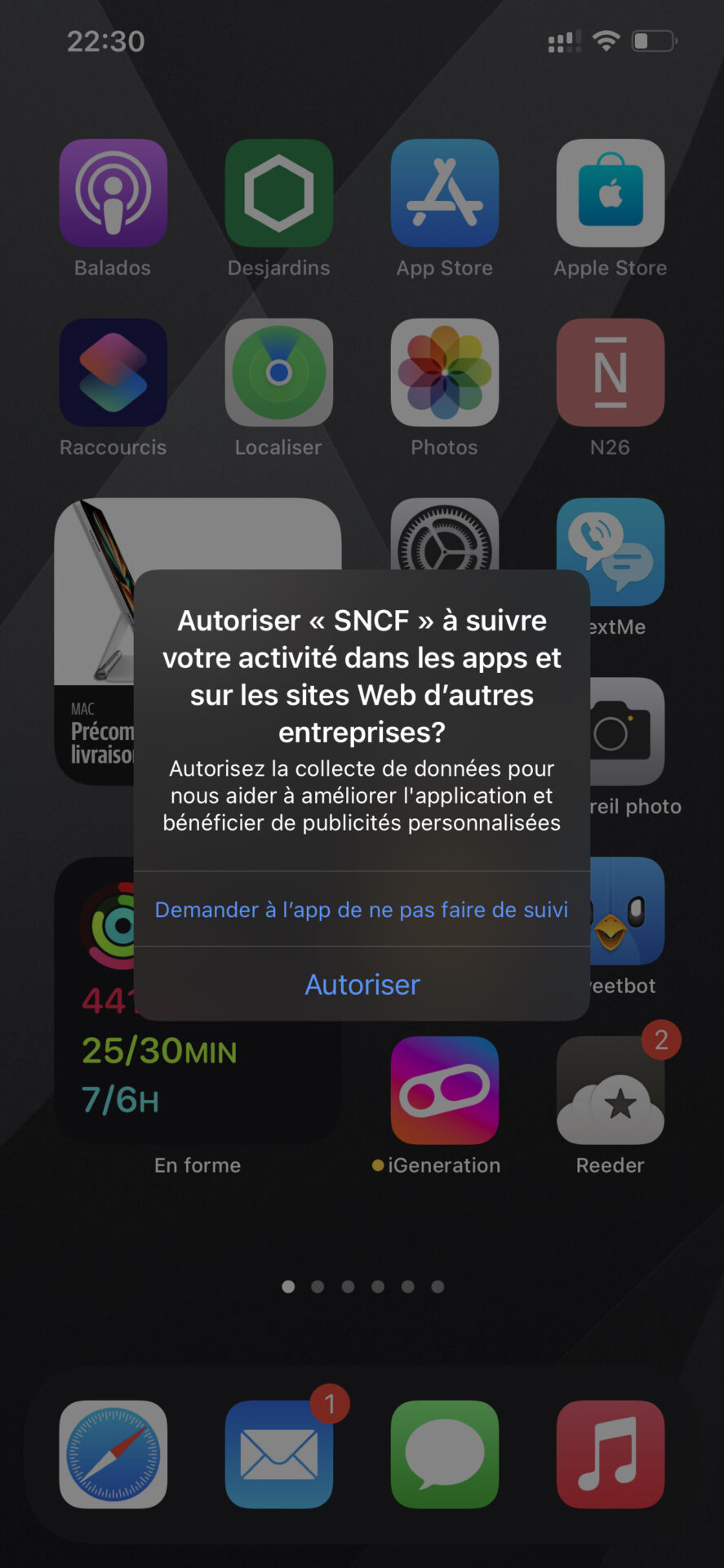 Bien sûr, l’utilisateur peut aussi autoriser le suivi de son activité, d’ailleurs le développeur a la possibilité d’expliquer pourquoi son application demande une telle autorisation. Mais dans les faits, ils seraient assez peu nombreux à donner leur feu vert.